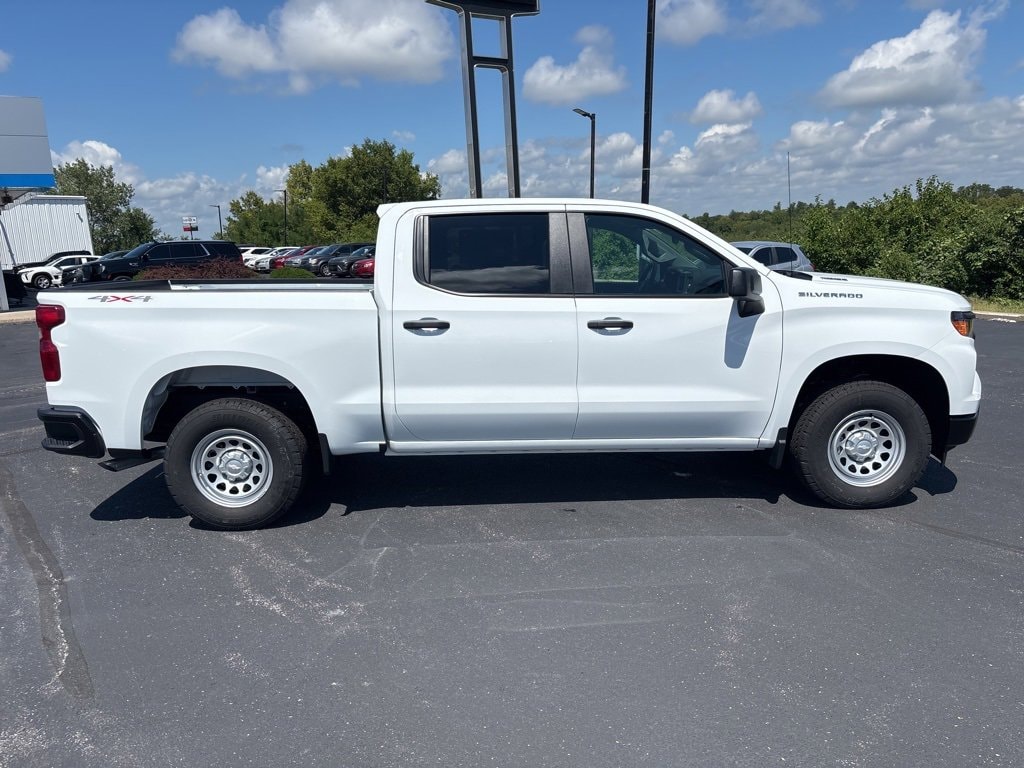 2025 Chevrolet Silverado 1500 WT 2.7L I4 Turbocharged DOHC 16V LEV3-SULEV30 310hp 4WD 4D Crew Cab Summit WhiteAt Roberts Chevrolet in Platte City, MO, we take pride in being a family-owned and operated dealership serving Platte City and the greater Kansas City area since 1999 reflecting a longstanding commitment to our community. We believe a handshake is more than a gesture; it's a symbol of trust, integrity, and our unwavering commitment to our customers. As part of that commitment, we are proud to offer a Free Lifetime Powertrain Warranty on qualifying new and used vehicles. This exclusive benefit provides long-term peace of mind at no cost to our customers further reinforcing our promise of honest value, transparent deals, and a truly worry-free ownership experience. Our Free Lifetime Powertrain Warranty is Nationwide - with NO mileage limits and NO time limits. Our Handshake Promise ensures a transparent, no-pressure car-buying experience where every customer is treated like family. As your local Chevrolet dealer, we understand the importance of trust and transparency. Thatâs why our customers appreciate our straightforward approach honest deals without hidden fees, and the price you see is the price you pay.Our dealership is more than just a place to buy a car; it's a part of the community. With a wide selection of new and pre-owned Chevrolet vehicles, we cater to the diverse needs of drivers in Platte City and surrounding areas including Weston, St. Joseph, Liberty, Kansas City, North Kansas City, Parkville, Leavenworth, KS, and Lansing, KS. Our commitment to excellence extends beyond sales, offering top-notch service and maintenance to keep your vehicle running smoothly throughout its lifetime. Thank you for taking the time to look at this beautiful 2025 Chevrolet Silverado 1500. Join the many satisfied customers who have found their perfect vehicle at Roberts Chevrolet. Visit us today and see why we're known for being the gold standard. Just good people doing good business with great deals who still believe in the golden rule! Important Pricing & Availability Information Roberts Chevrolet Out-of-state delivery is available; a delivery charge may apply. To confirm vehicle availability, schedule a test drive, or inquire about new arrivals, call us at (816) 858-3200. Due to high demand, appointments are strongly recommended. Disclaimer: Images and graphics are for illustrative purposes only and may be updated at the dealerships discretion.