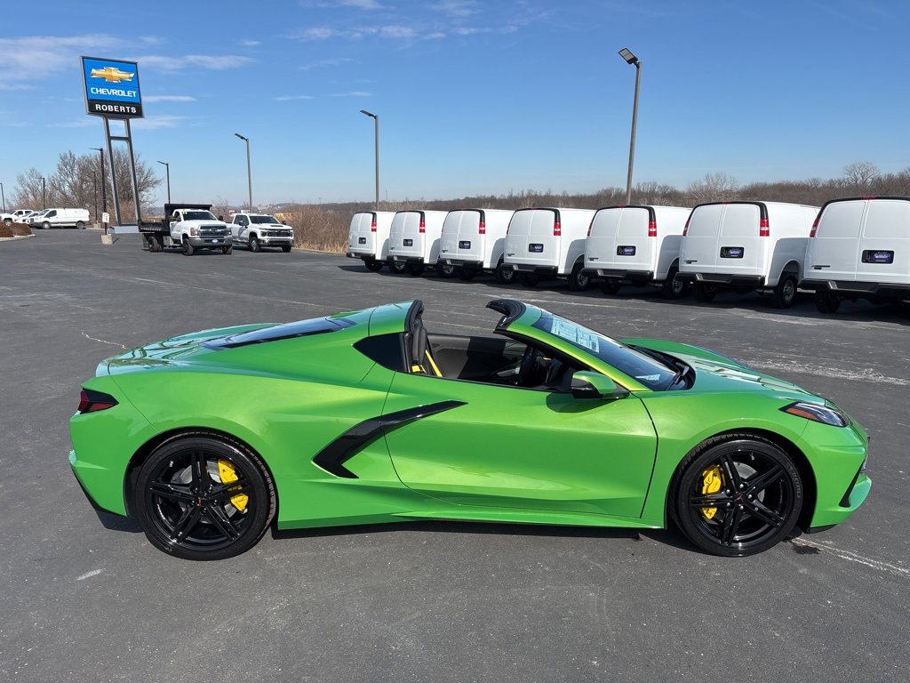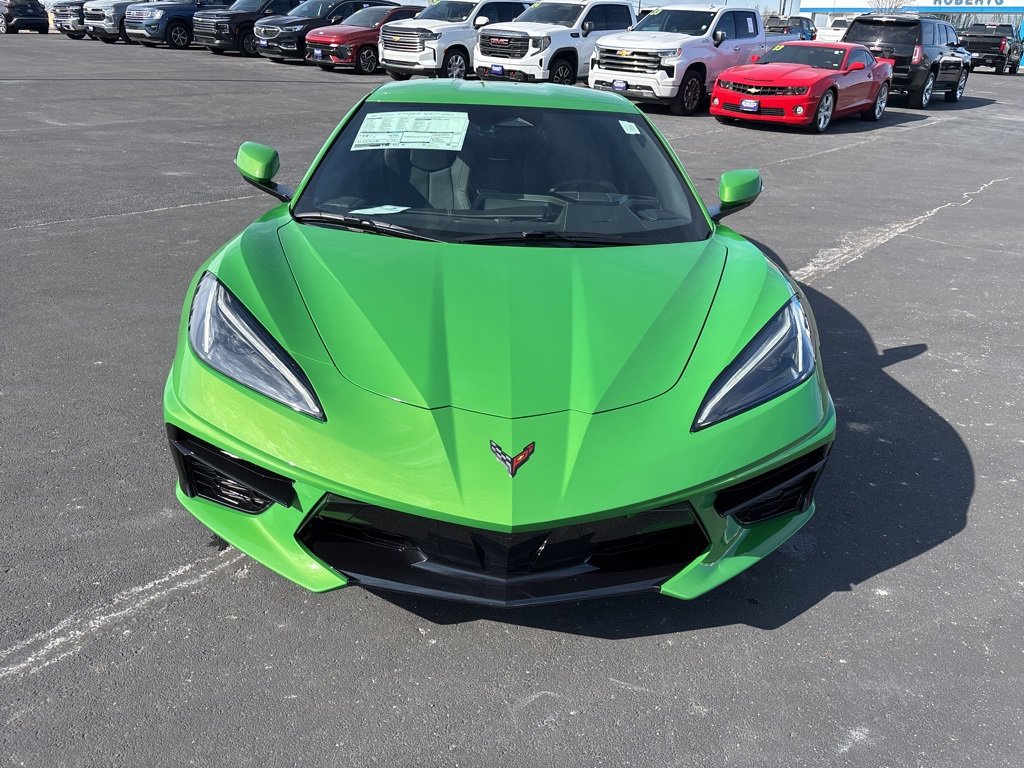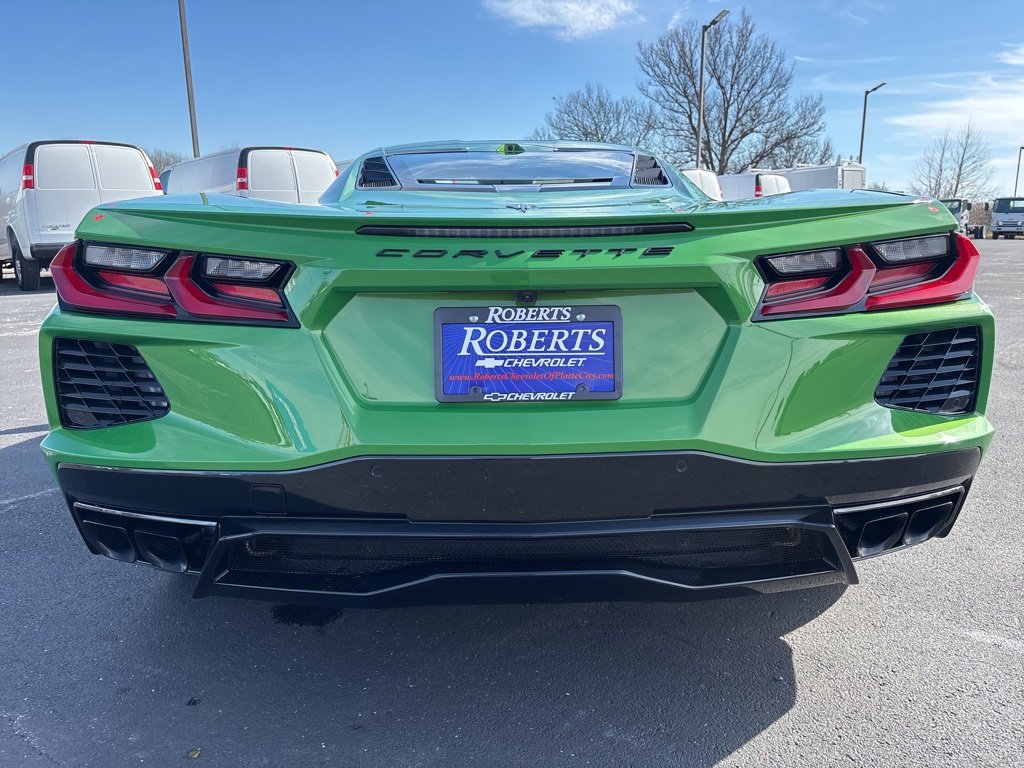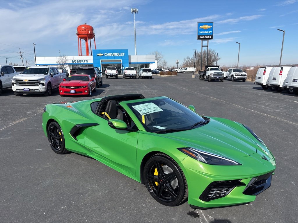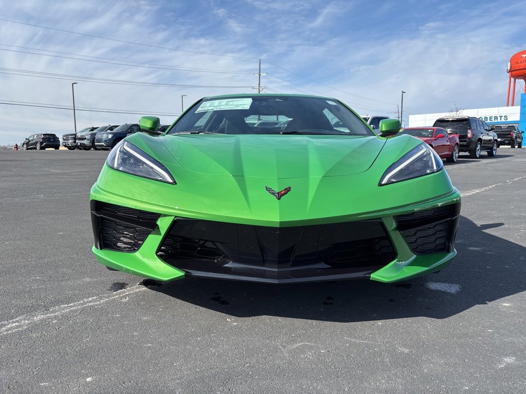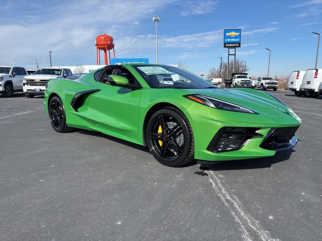 2026 Chevrolet Corvette Stingray 1LT 6.2L V8 RWD 2D Coupe Roswell Green Metallic10 Speakers, 4-Wheel Disc Brakes, 8-Way Power Driver Seat Adjuster, 8-Way Power Passenger Seat Adjuster, ABS brakes, Air Conditioning, Alloy wheels, AM/FM radio: SiriusXM, Auto High-beam Headlights, Auto-dimming Rear-View mirror, Automatic temperature control, Battery Protection Package, Black Exhaust Tips, Brake assist, Bumpers: body-color, Carbon Flash Metallic-Painted High Wing Spoiler, Compass, Delay-off headlights, Driver door bin, Driver vanity mirror, Dual front impact airbags, Dual front side impact airbags, Electronic Stability Control, Emergency communication system: OnStar and Chevrolet connected services capable, Engine Lighting, Four wheel independent suspension, Front anti-roll bar, Front Bucket Seats, Front Center Armrest, Front dual zone A/C, Front reading lights, Fully automatic headlights, GT1 Bucket Seats, Heated door mirrors, Illuminated entry, Leather Shift Knob, Leather steering wheel, Low tire pressure warning, Mulan Leather Seating Surfaces with Perforated Inserts, Navigation System, Occupant sensing airbag, Outside temperature display, Overhead console, Panic alarm, Passenger door bin, Passenger vanity mirror, Performance Exhaust with Stainless-Steel Tips, Power door mirrors, Power driver seat, Power passenger seat, Power steering, Power windows, Premium audio system: Chevrolet Infotainment 3 Plus, Radio data system, Radio: Infotainment System with Google Built-in, Rear anti-roll bar, Rear window defroster, Remote keyless entry, Speed control, Speed-sensing steering, Sport steering wheel, Steering wheel mounted audio controls, Tachometer, Telescoping steering wheel, Tilt steering wheel, Traction control, Trip computer, Turn signal indicator mirrors, Variably intermittent wipers, Velocity Yellow-Painted Calipers, Voltmeter, Wheels: 19 x 8.5 Front and 20 x 11 Rear 5-Split-Spoke, Yellow Seat Belt Color.At Roberts Chevrolet in Platte City, MO, we take pride in being a family-owned and operated dealership serving Platte City and the greater Kansas City area since 1999 reflecting a longstanding commitment to our community. We believe a handshake is more than a gesture; it's a symbol of trust, integrity, and our unwavering commitment to our customers. As part of that commitment, we are proud to offer a Free Lifetime Powertrain Warranty on qualifying new and used vehicles. This exclusive benefit provides long-term peace of mind at no cost to our customers further reinforcing our promise of honest value, transparent deals, and a truly worry-free ownership experience. Our Free Lifetime Powertrain Warranty is Nationwide - with NO mileage limits and NO time limits. Our Handshake Promise ensures a transparent, no-pressure car-buying experience where every customer is treated like family. As your local Chevrolet dealer, we understand the importance of trust and transparency. That’s why our customers appreciate our straightforward approach honest deals without hidden fees, and the price you see is the price you pay.Our dealership is more than just a place to buy a car; it's a part of the community. With a wide selection of new and pre-owned Chevrolet vehicles, we cater to the diverse needs of drivers in Platte City and surrounding areas including Weston, St. Joseph, Liberty, Kansas City, North Kansas City, Parkville, Leavenworth, KS, and Lansing, KS. Our commitment to excellence extends beyond sales, offering top-notch service and maintenance to keep your vehicle running smoothly throughout its lifetime. Thank you for taking the time to look at this stunning-looking 2026 Chevrolet Corvette. Join the many satisfied customers who have found their perfect vehicle at Roberts Chevrolet. Visit us today and see why we're known for being the gold standard. Just good people doing good business with great deals who still believe in the golden rule! Important Pricing & Availability Information Roberts Chevrole