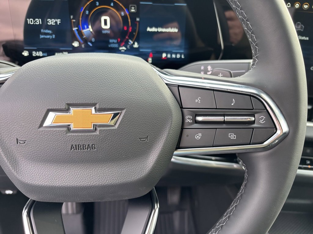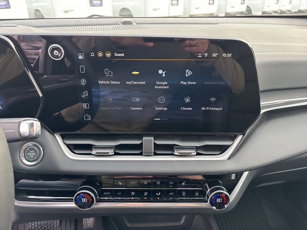 2-Way Power Driver Lumbar Control Seat Adjuster, 3.47 Final Drive Axle Ratio, 4-Wheel Disc Brakes, 6 Speakers, ABS brakes, Air Conditioning, Alloy wheels, AM/FM radio: SiriusXM, Auto High-beam Headlights, Brake assist, Bumpers: body-color, Cargo Mat, Cloth Seat Trim, Compass, Convenience Package II, Delay-off headlights, Driver 6-Way Manual Seat Adjuster, Driver 8-Way Power Seat Adjuster, Driver door bin, Driver vanity mirror, Dual front impact airbags, Dual front side impact airbags, Dual-Zone Automatic Climate Control, Electronic Stability Control, Emergency communication system: OnStar and Chevrolet connected services capable, Evotex Seat Trim, Four wheel independent suspension, Front anti-roll bar, Front Bucket Seats, Front Center Armrest, Front Fog Lamps, Front Passenger 4-Way Manual Seat Adjuster, Front reading lights, Fully automatic headlights, HD Surround Vision, Heated door mirrors, Heated front seats, Heated steering wheel, Heated Wiper Park, Illuminated entry, Intermittent Front Rain-Sensing Wipers, Low tire pressure warning, Navigation System, Occupant sensing airbag, Outside temperature display, Overhead airbag, Overhead console, Overhead Sunglass Storage, Panic alarm, Passenger door bin, Passenger vanity mirror, Power door mirrors, Power steering, Power windows, Premium audio system: Chevrolet Infotainment 3, Programmable Universal Home Remote, Radio data system, Radio: 11.3 Diagonal Advanced Color LCD Display, Rear anti-roll bar, Rear Camera Mirror Washer, Rear Pedestrian Alert, Rear reading lights, Rear seat center armrest, Rear window defroster, Rear window wiper, Remote keyless entry, Security system, Speed control, Speed-sensing steering, Split folding rear seat, Spoiler, Steering wheel mounted audio controls, Tachometer, Telescoping steering wheel, Tilt steering wheel, Traction control, Traffic Sign Recognition, Trip computer, Variably intermittent wipers, Wheels: 17 Grazen Metallic Machined-Face Aluminum.