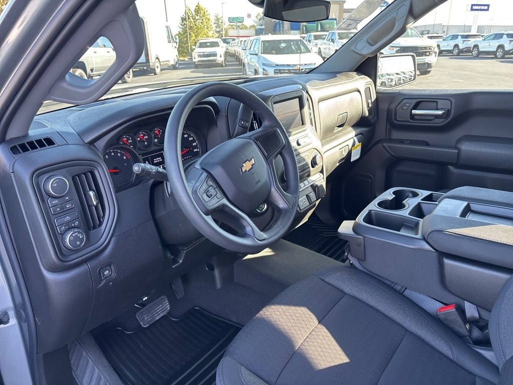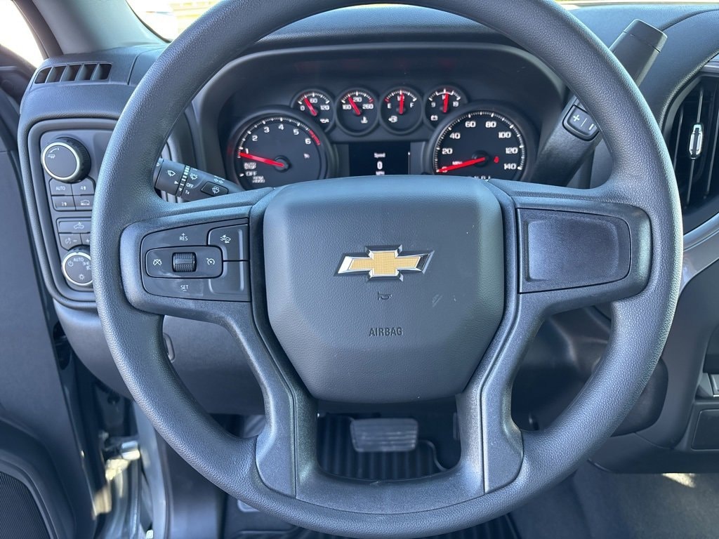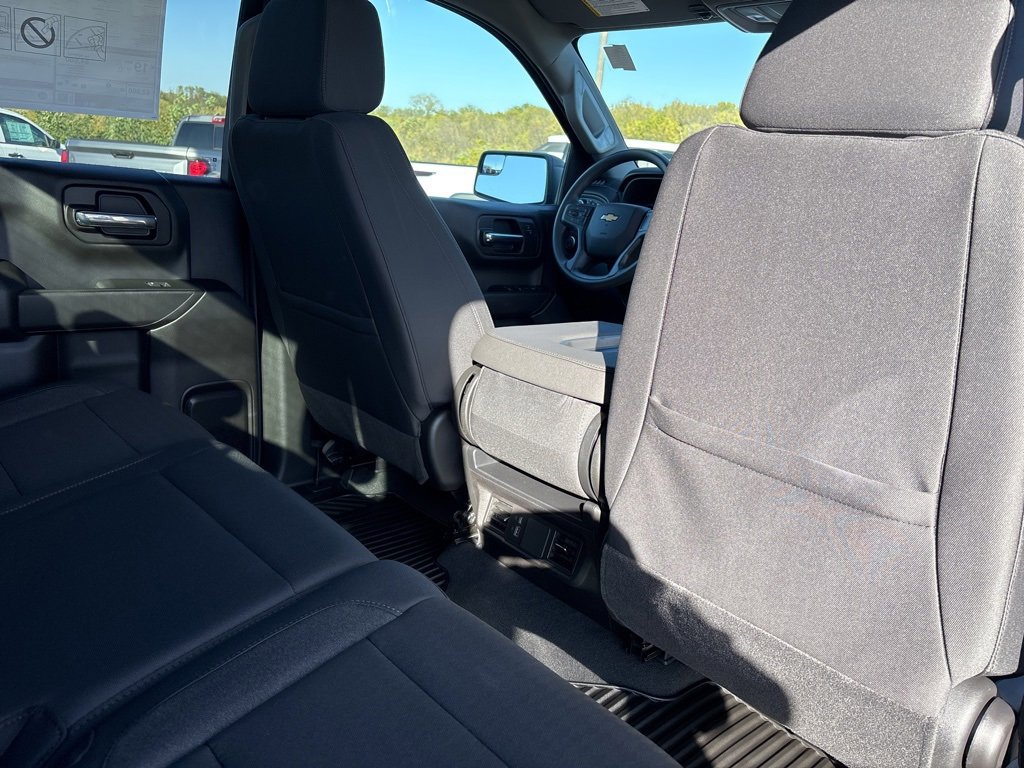 10-Way Power Driver Seat w/Lumbar, 120-Volt Bed Mounted Power Outlet, 120-Volt Interior Power Outlet, 3.42 Rear Axle Ratio, 3.5 Monochromatic Display Driver Info Center, 4-Wheel Disc Brakes, 40/20/40 Front Split-Bench Seat, 6 Speakers, 6-Speaker Audio System, ABS brakes, Air Conditioning, Alloy wheels, AM/FM radio: SiriusXM, Apple CarPlay/Android Auto, Auto High-beam Headlights, Auto-Locking Rear Differential, Automatic Emergency Braking, Bluetooth® For Phone, Brake assist, Bumpers: body-color, Chevytec Spray-On Black Bedliner, Cloth Seat Trim, Color-Keyed Carpeting Floor Covering, Compass, Custom Convenience Package, Custom Value Package, Deep-Tinted Glass, Delay-off headlights, Driver door bin, Driver vanity mirror, Dual front impact airbags, Dual front side impact airbags, Dual Rear USB Ports (Charge Only), Electric Rear-Window Defogger, Electronic Cruise Control, Electronic Stability Control, Emergency communication system: OnStar, EZ Lift Power Lock & Release Tailgate, Following Distance Indicator, Forward Collision Alert, Front anti-roll bar, Front Center Armrest w/Storage, Front Frame-Mounted Black Recovery Hooks, Front License Plate Kit, Front Pedestrian Braking, Front reading lights, Front Rubberized Vinyl Floor Mats, Front wheel independent suspension, Fully automatic headlights, HD Rear Vision Camera, Heated door mirrors, High Capacity Suspension Package, Hitch Guidance, Illuminated entry, IntelliBeam Automatic High Beam On/Off, Lane Keep Assist w/Lane Departure Warning, LED Cargo Area Lighting, Low tire pressure warning, Manual Tilt Wheel Steering Column, Occupant sensing airbag, OnStar Services Capable, Outside temperature display, Overhead airbag, Overhead console, Panic alarm, Passenger door bin, Passenger vanity mirror, Power door mirrors, Power driver seat, Power Front Windows w/Driver Express Up/Down, Power Front Windows w/Passenger Express Down, Power Rear Windows w/Express Down, Power steering, Power windows, Preferred Equipment Group 1CX, Premium audio system: Chevrolet Infotainment 3, Radio data system, Radio: Chevrolet Infotainment 3 System, Rear 60/40 Folding Bench Seat (Folds Up), Rear reading lights, Rear Rubberized-Vinyl Floor Mats, Rear step bumper, Rear window defroster, Remote Keyless Entry, Remote keyless entry, Remote Vehicle Starter System, Security system, SiriusXM Trial Subscription, Speed control, Speed-sensing steering, Split folding rear seat, Standard Tailgate, Tachometer, Teen Driver, Theft Deterrent System (Unauthorized Entry), Tilt steering wheel, Tire Pressure Monitoring System, Traction control, Trailering Package, Trip computer, Variably intermittent wipers, Voltmeter, Wheels: 20 x 9 Bright Silver Painted Aluminum, Wheels: 20 x 9 High Gloss Black Painted Alum, Wi-Fi Hot Spot Capable.