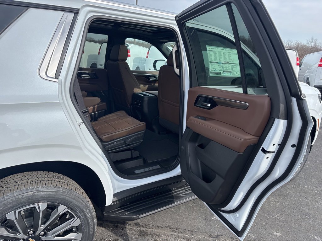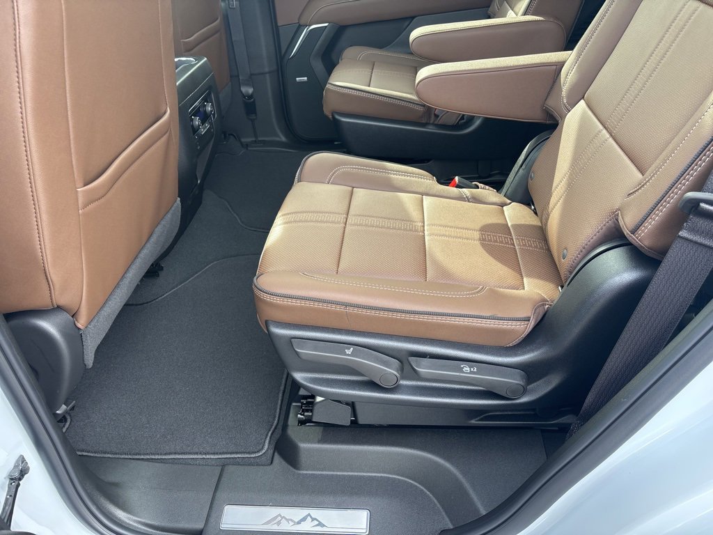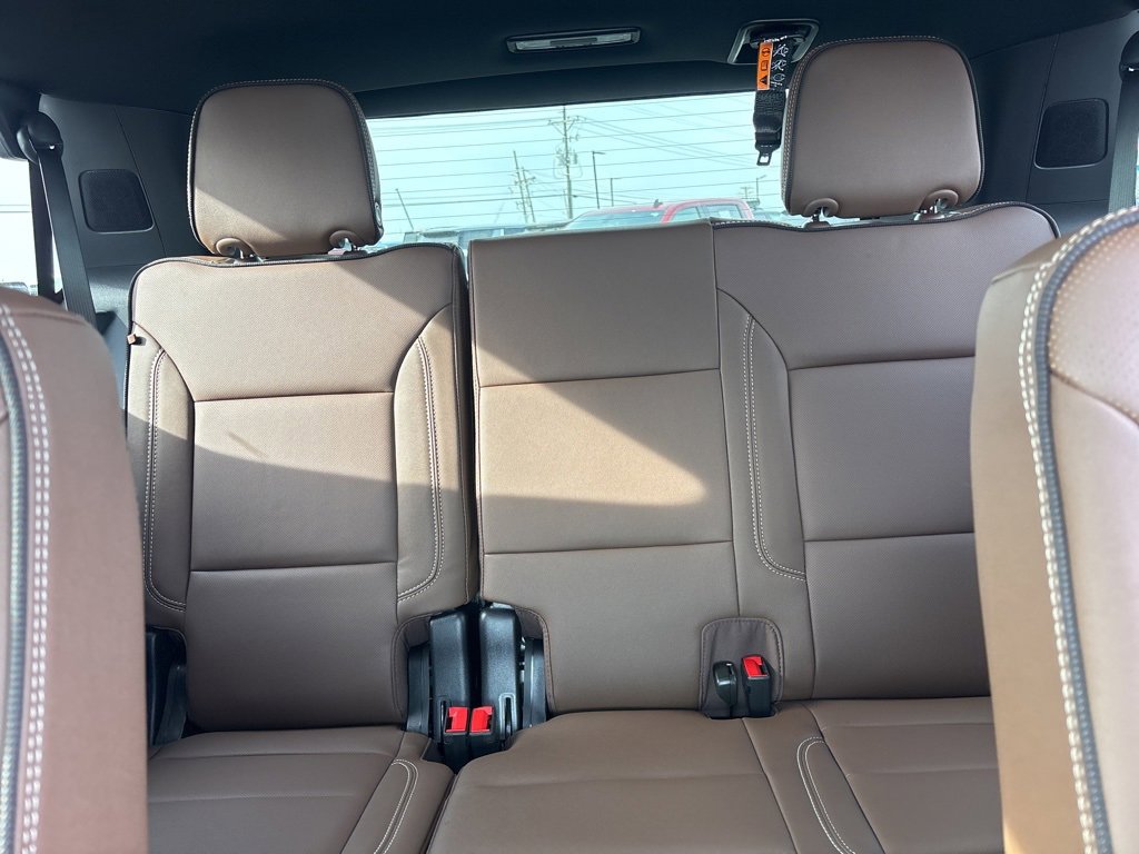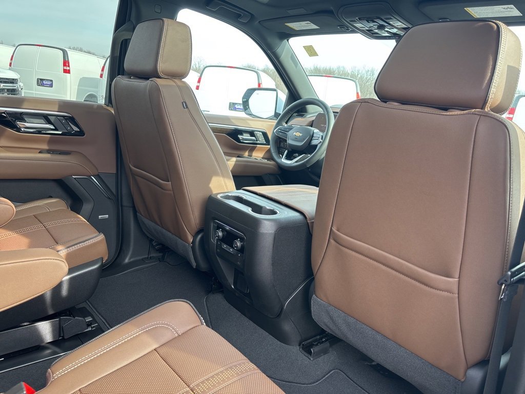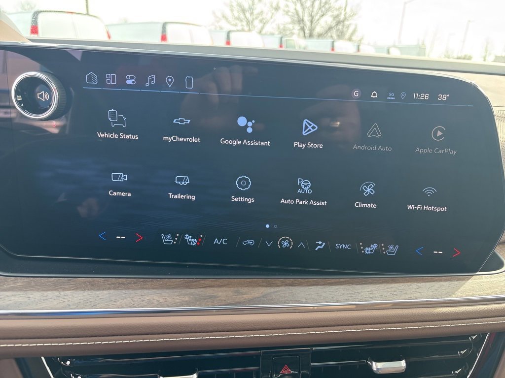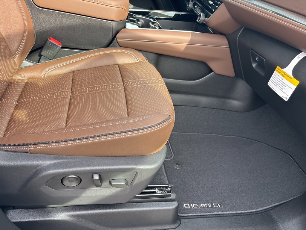 10 Speakers, 15 Diagonal Multi-Color Head-Up Display, 1st and 2nd Row Color-Keyed Carpeted Floor Mats, 3-Spoke Wrapped Steering Wheel, 3.23 Rear Axle Ratio, 3rd Row 60/40 Power-Folding Split-Bench Seat, 3rd row seats: split-bench, 4-Way Power Driver Lumbar Seat Adjuster, 4-Way Power Front Passenger Lumbar Seat Adjuster, 4-Wheel Disc Brakes, 8-Way Power Driver Seat Adjuster, 8-Way Power Front Passenger Seat Adjuster, ABS brakes, Adaptive suspension, Air Conditioning, Alloy wheels, AM/FM radio: SiriusXM with 360L, Apple CarPlay/Android Auto, Auto High-beam Headlights, Auto-dimming door mirrors, Auto-dimming Rear-View mirror, Auto-leveling suspension, Automatic temperature control, Bose 10-Speaker Centerpoint Surround Audio System Feature, Brake assist, Bright Front and Rear Door Sill Plates, Bumpers: body-color, Chrome Door Handles with Body-Color Strip, Color-Keyed Carpeting Floor Covering, Compass, Delay-off headlights, Driver and Front Passenger Heated and Ventilated Seats, Driver door bin, Driver vanity mirror, Dual Exhaust System, Dual front impact airbags, Dual front side impact airbags, Dual-Pane Power Panoramic Sunroof, Electronic Stability Control, Emergency communication system: OnStar and Chevrolet connected services capable, Exterior Parking Camera Rear, Floor Console, Four wheel independent suspension, Front anti-roll bar, Front Bucket Seats, Front Center Armrest, Front dual zone A/C, Front fog lights, Front LED Fog Lamps, Front reading lights, Frontal Driver and Outboard Passenger Airbags, Fully automatic headlights, Garage door transmitter, Heads-Up Display, Heated 2nd Row Outboard Seats, Heated door mirrors, Heated Driver and Front Passenger Seats, Heated front seats, Heated rear seats, Heated Steering Wheel, Heated steering wheel, Illuminated entry, Inside Rearview Auo-Dimming Rear Camera Mirror, Interior Camera, Key Card, LED Headlamps with LED Daytime Running Lamps, LED Tail Lamps, Low tire pressure warning, Magnetic Ride Control Suspension, Memory seat, Memory Settings, Navigation system: Google built-in compatibility (select service plan required, terms and limitations apply), Occupant sensing airbag, Outside Heated Power-Adjustable Mirrors, Outside temperature display, Overhead airbag, Overhead console, Panic alarm, Passenger door bin, Passenger vanity mirror, Perforated Leather Seat Trim, Power door mirrors, Power driver seat, Power Liftgate, Power passenger seat, Power Release 2nd Row Bucket Seats, Power steering, Power Tilt and Telescopic Steering Column, Power windows, Premium audio system: Chevrolet Infotainment 3 Premium, Radio data system, Radio: 17.7 Diagonal Advanced Color LCD Display, Rain sensing wipers, Rear air conditioning, Rear anti-roll bar, Rear Power Liftgate, Rear reading lights, Rear window defroster, Rear window wiper, Remote keyless entry, Remote Start, Security system, Set of 4 Wheel Locks, SiriusXM with 360L Trial Subscription, Speed control, Speed-sensing steering, Split folding rear seat, Spoiler, Steering wheel memory, Steering wheel mounted audio controls, Sun and Tow Package, Tachometer, Telescoping steering wheel, Tilt steering wheel, Traction control, Trip computer, Turn signal indicator mirrors, Universal Home Remote, Variably intermittent wipers, Ventilated front seats, Voltmeter, Wheels: 22 x 9 Bright Machined Aluminum, Wireless Phone Charging.