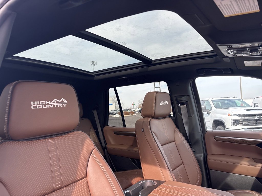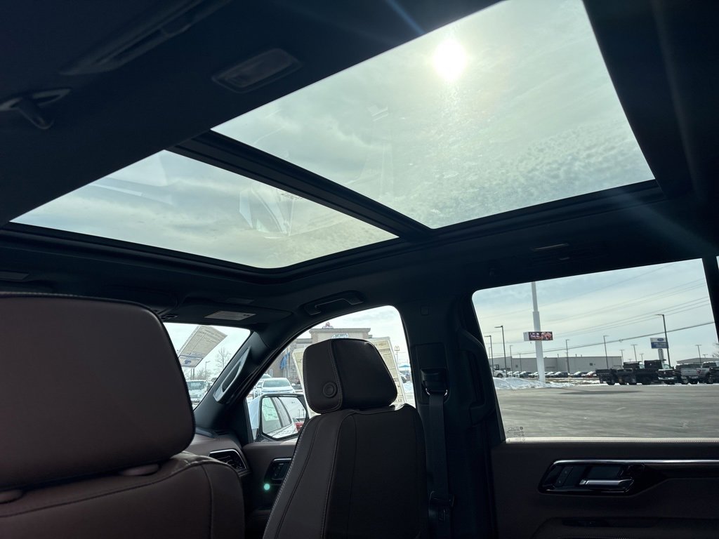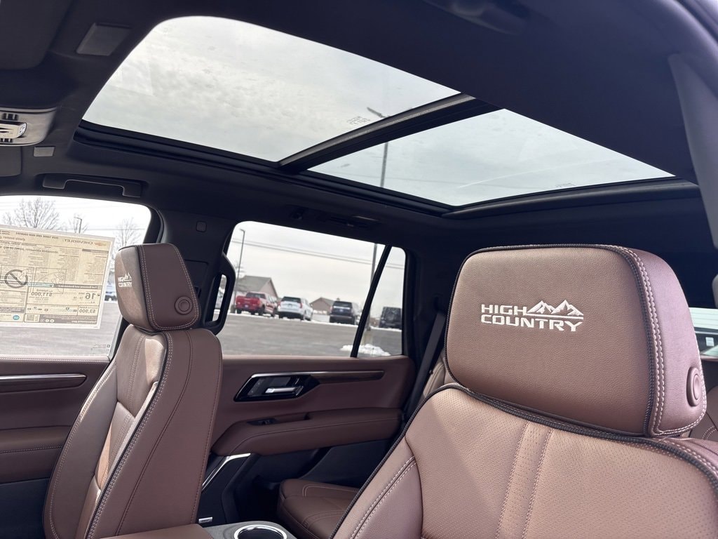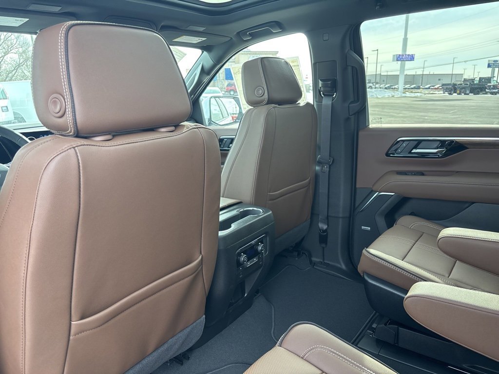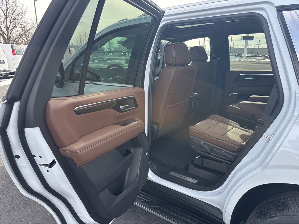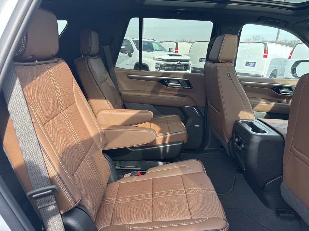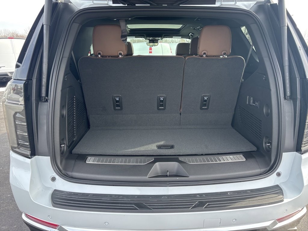 10 Speakers, 15 Diagonal Multi-Color Head-Up Display, 1st and 2nd Row Color-Keyed Carpeted Floor Mats, 3-Spoke Wrapped Steering Wheel, 3.23 Rear Axle Ratio, 3rd Row 60/40 Power-Folding Split-Bench Seat, 3rd row seats: split-bench, 4-Way Power Driver Lumbar Seat Adjuster, 4-Way Power Front Passenger Lumbar Seat Adjuster, 4-Wheel Disc Brakes, 8-Way Power Driver Seat Adjuster, 8-Way Power Front Passenger Seat Adjuster, ABS brakes, Adaptive suspension, Air Conditioning, Alloy wheels, AM/FM radio: SiriusXM with 360L, Apple CarPlay/Android Auto, Auto High-beam Headlights, Auto-dimming door mirrors, Auto-dimming Rear-View mirror, Auto-leveling suspension, Automatic temperature control, Bose 10-Speaker Centerpoint Surround Audio System Feature, Brake assist, Bright Front and Rear Door Sill Plates, Bumpers: body-color, Chrome Door Handles with Body-Color Strip, Color-Keyed Carpeting Floor Covering, Compass, Delay-off headlights, Driver and Front Passenger Heated and Ventilated Seats, Driver door bin, Driver vanity mirror, Dual Exhaust System, Dual front impact airbags, Dual front side impact airbags, Dual-Pane Power Panoramic Sunroof, Electronic Stability Control, Emergency communication system: OnStar and Chevrolet connected services capable, Exterior Parking Camera Rear, Floor Console, Four wheel independent suspension, Front anti-roll bar, Front Bucket Seats, Front Center Armrest, Front dual zone A/C, Front fog lights, Front LED Fog Lamps, Front reading lights, Frontal Driver and Outboard Passenger Airbags, Fully automatic headlights, Garage door transmitter, Heads-Up Display, Heated 2nd Row Outboard Seats, Heated door mirrors, Heated Driver and Front Passenger Seats, Heated front seats, Heated rear seats, Heated Steering Wheel, Heated steering wheel, Illuminated entry, Inside Rearview Auo-Dimming Rear Camera Mirror, Interior Camera, Key Card, LED Headlamps with LED Daytime Running Lamps, LED Tail Lamps, Low tire pressure warning, Magnetic Ride Control Suspension, Memory seat, Memory Settings, Navigation system: Google built-in compatibility (select service plan required, terms and limitations apply), Occupant sensing airbag, Outside Heated Power-Adjustable Mirrors, Outside temperature display, Overhead airbag, Overhead console, Panic alarm, Passenger door bin, Passenger vanity mirror, Perforated Leather Seat Trim, Power door mirrors, Power driver seat, Power Liftgate, Power passenger seat, Power Release 2nd Row Bucket Seats, Power steering, Power Tilt and Telescopic Steering Column, Power windows, Premium audio system: Chevrolet Infotainment 3 Premium, Radio data system, Radio: 17.7 Diagonal Advanced Color LCD Display, Rain sensing wipers, Rear air conditioning, Rear anti-roll bar, Rear Power Liftgate, Rear reading lights, Rear window defroster, Rear window wiper, Remote keyless entry, Remote Start, Security system, Set of 4 Wheel Locks, SiriusXM with 360L Trial Subscription, Speed control, Speed-sensing steering, Split folding rear seat, Spoiler, Steering wheel memory, Steering wheel mounted audio controls, Sun and Tow Package, Tachometer, Telescoping steering wheel, Tilt steering wheel, Traction control, Trip computer, Turn signal indicator mirrors, Universal Home Remote, Variably intermittent wipers, Ventilated front seats, Voltmeter, Wheels: 22 x 9 Bright Machined Aluminum, Wireless Phone Charging.