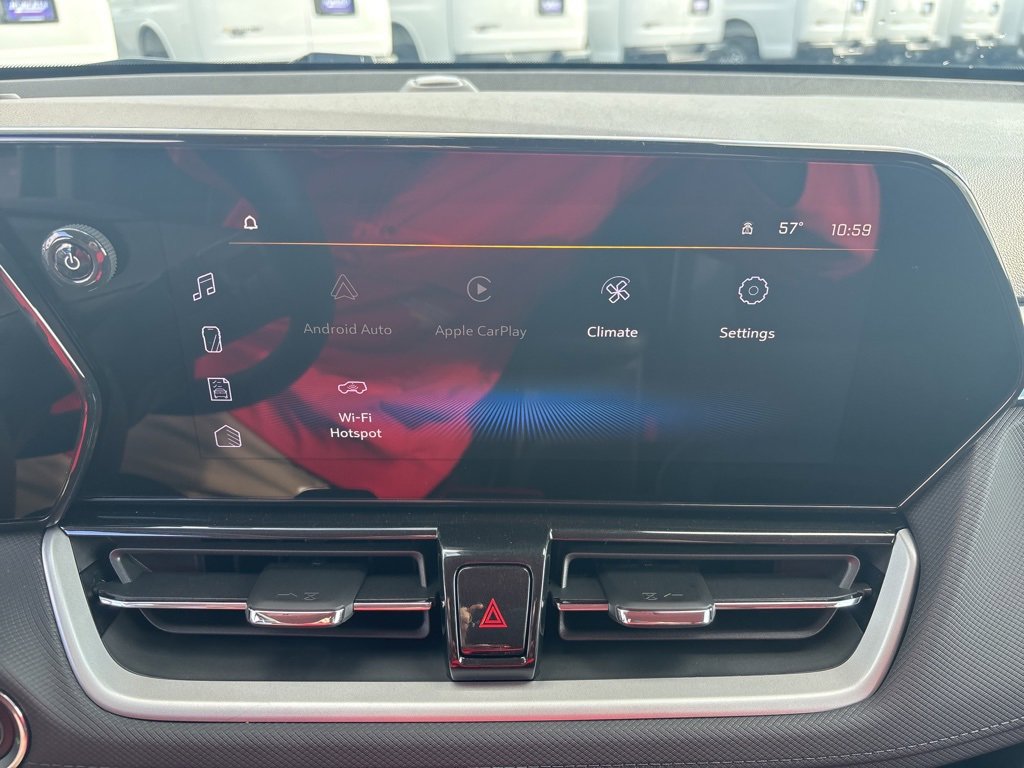 120-Volt Power Outlet, 2-Way Power Driver Lumbar Seat Adjuster, 4-Way Manual Front Passenger Seat Adjuster, 4-Wheel Disc Brakes, 5.45 Final Drive Axle Ratio, 6 Speakers, 6-Way Manual Driver Seat Adjuster, 8-Way Power Driver Seat Adjuster, ABS brakes, Air Conditioning, Alloy wheels, AM/FM radio: SiriusXM, Auto High-beam Headlights, Brake assist, Bumpers: body-color, Cabin Humidity Sensor, Cloth Seat Trim, Compass, Convenience Package, Delay-off headlights, Driver Confidence Package, Driver door bin, Driver vanity mirror, Dual front impact airbags, Dual front side impact airbags, Electronic Stability Control, Emergency communication system: OnStar and Chevrolet connected services capable, Enhanced Performance 6-Speaker Audio System, Exterior Parking Camera Rear, Flat-Folding Front Passenger Seatback, Front anti-roll bar, Front Bucket Seats, Front Center Armrest, Front reading lights, Front wheel independent suspension, Fully automatic headlights, Heated door mirrors, Heated Steering Wheel, Illuminated entry, Inside Rear-View Auto-Dimming Mirror, Knee airbag, Low tire pressure warning, LT Cold Weather Package, Occupant sensing airbag, Overhead airbag, Overhead console, Panic alarm, Passenger door bin, Passenger vanity mirror, Power door mirrors, Power Liftgate, Power steering, Power windows, Radio data system, Radio: AM/FM Stereo Audio System, Rear Center Armrest, Rear Cross Traffic Alert, Rear Park Assist, Rear side impact airbag, Rear window defroster, Rear window wiper, Remote keyless entry, Security system, Single-Zone Automatic Climate Control, SiriusXM Trial Subscription, Speed control, Split folding rear seat, Spoiler, Steering wheel mounted audio controls, Tachometer, Telescoping steering wheel, Tilt steering wheel, Traction control, Trip computer, Variably intermittent wipers, Wheels: 17 High Gloss Black Machined Aluminum, Wireless Apple CarPlay/Android Auto, Wireless Charging, Wrapped Steering Wheel.