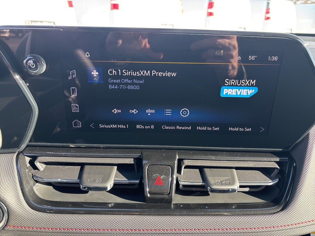 120-Volt Power Outlet, 2-Way Power Driver Lumbar Seat Adjuster, 3.17 Final Drive Axle Ratio, 4-Way Manual Front Passenger Seat Adjuster, 4-Wheel Disc Brakes, 6 Speakers, 8-Way Power Driver Seat Adjuster, ABS brakes, Adaptive Cruise Control, Air Conditioning, Alloy wheels, AM/FM radio: SiriusXM, Auto High-beam Headlights, Bose Premium 7-Speaker Audio System Feature, Brake assist, Bumpers: body-color, Cabin Humidity Sensor, Compass, Convenience Package, Delay-off headlights, Driver Confidence Package, Driver door bin, Driver vanity mirror, Dual front impact airbags, Dual front side impact airbags, Dual-Pane Panoramic Power Sunroof, Electronic Stability Control, Emergency communication system: OnStar and Chevrolet connected services capable, Evotex Seat Trim, Exterior Parking Camera Rear, Flat-Folding Front Passenger Seatback, Front anti-roll bar, Front Bucket Seats, Front Center Armrest, Front reading lights, Front wheel independent suspension, Fully automatic headlights, Hands Free Power Programmable Liftgate, Heated door mirrors, Heated front seats, Heated steering wheel, Illuminated entry, Inside Rear-View Auto-Dimming Mirror, Knee airbag, Low tire pressure warning, Occupant sensing airbag, Overhead airbag, Overhead console, Panic alarm, Passenger door bin, Passenger vanity mirror, Power door mirrors, Power driver seat, Power steering, Power windows, Radio data system, Radio: AM/FM Stereo Audio System, Rear Cross Traffic Alert, Rear Park Assist, Rear seat center armrest, Rear side impact airbag, Rear window defroster, Rear window wiper, Remote keyless entry, Security system, Single-Zone Automatic Climate Control, SiriusXM Trial Subscription, Speed control, Split folding rear seat, Spoiler, Steering wheel mounted audio controls, Tachometer, Telescoping steering wheel, Tilt steering wheel, Traction control, Trip computer, Variably intermittent wipers, Wheels: 19 High Gloss Black Machined Aluminum, Wireless Apple CarPlay/Android Auto, Wireless Charging.