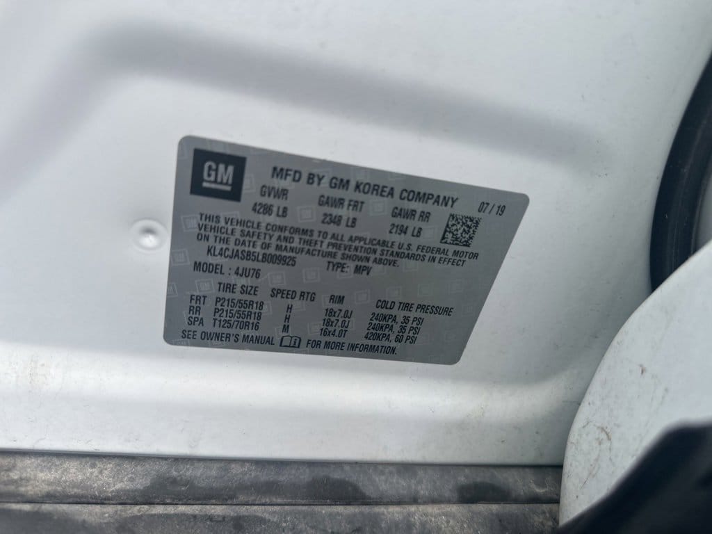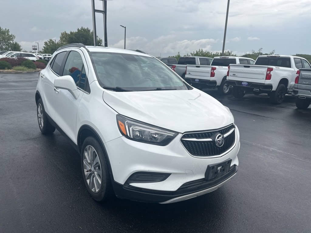 FREE LIFETIME POWERTRAIN WARRANTY, **Android Auto**, **Apple CarPlay**, **Backup Camera**, **Bluetooth Hands-Free**, **Keyless Access**, **Wi-Fi Hotspot**, Alloy Wheels, Remote Start, Encore Preferred, Summit White, 2-Way Manual Front Passenger Seat Adjuster, 3.53 Final Drive Axle Ratio, 4-Wheel Disc Brakes, 6 Speakers, 6-Speaker Audio System, 6-Way Power Driver Seat Adjuster, ABS brakes, Air Conditioning, All-Weather Floor Mats, Alloy wheels, AM/FM radio: SiriusXM, Apple CarPlay/Android Auto, Brake assist, Bumpers: body-color, Cloth w/Leatherette Seat Trim, Compass, Delay-off headlights, Driver door bin, Driver vanity mirror, Driver's Seat Mounted Armrest, Dual front impact airbags, Dual front side impact airbags, Electronic Stability Control, Emergency communication system: OnStar and Buick connected services capable, Exterior Parking Camera Rear, Front anti-roll bar, Front Bucket Seats, Front License Plate Bracket, Front reading lights, Front wheel independent suspension, Fully automatic headlights, Heated door mirrors, Illuminated entry, Knee airbag, Low tire pressure warning, Occupant sensing airbag, Outside temperature display, Overhead airbag, Panic alarm, Passenger door bin, Passenger vanity mirror, Power door mirrors, Power driver seat, Power steering, Power windows, Preferred Equipment Group 1SB, Radio data system, Radio: Buick Infotainment System AM/FM Stereo, Rear seat center armrest, Rear side impact airbag, Rear window defroster, Rear window wiper, Remote keyless entry, Remote Vehicle Starter System, Ride & Handling Suspension, Roof rack: rails only, Security system, SiriusXM Radio, Speed control, Speed-sensing steering, Split folding rear seat, Spoiler, Steering wheel mounted audio controls, Tachometer, Telescoping steering wheel, Tilt steering wheel, Traction control, Trip computer, Variably intermittent wipers, Wheels: 18 Machined-Face Alloy, Encore Preferred, Summit White.