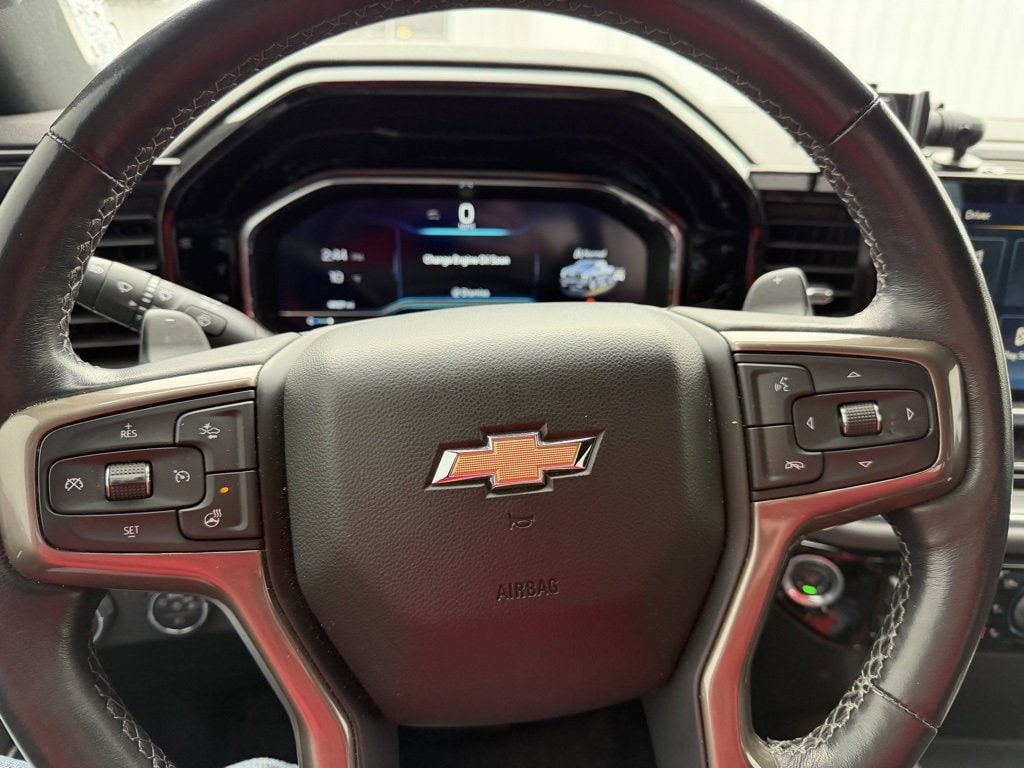 10-Way Power Driver Seat w/Lumbar, 10-Way Power Passenger Seat Adjuster w/Lumbar, 12.3 Multicolor Reconfigurable Digital Display, 120-Volt Bed Mounted Power Outlet, 120-Volt Instrument Panel Power Outlet, 15 Diagonal Multicolor Head-Up Display, 170 Amp Alternator, 2 USB Data Ports, 2nd Row Heated Outboard Seats, 3.23 Rear Axle Ratio, 4-Wheel Disc Brakes, 7 Speakers, ABS brakes, Adaptive Cruise Control, Air Conditioning, Alloy wheels, AM/FM radio: SiriusXM with 360L, Apple CarPlay/Android Auto, Auto High-beam Headlights, Auto-dimming door mirrors, Auto-Dimming Inside Rear-View Mirror, Auto-dimming Rear-View mirror, Auto-Locking Rear Differential, Automatic Emergency Braking, Automatic temperature control, Bed View Camera, Bluetooth® For Phone, Body-Color Painted Mirror Caps, Bodyside moldings, Brake assist, Bumpers: body-color, Chevrolet Connected Access Capable, Chevytec Spray-On Black Bedliner, Chrome Assist Steps, Chrome Recovery Hooks, Color-Keyed Carpeting Floor Covering, Compass, Deep-Tinted Glass, Delay-off headlights, Driver door bin, Driver Memory, Driver vanity mirror, Dual Exhaust w/Polished Outlets, Dual front impact airbags, Dual front side impact airbags, Dual Rear USB Ports (Charge Only), Electric Rear-Window Defogger, Electrical Steering Column Lock, Electronic Cruise Control, Electronic Stability Control, Electronic Transmission Range Selector Shifter, Floor Mounted Center Console, Following Distance Indicator, Forward Collision Alert, Front anti-roll bar, Front Bucket Seats, Front Carpeted Floor Mats, Front Center Armrest, Front dual zone A/C, Front fog lights, Front LED Fog Lamps, Front License Plate Kit, Front Pedestrian Braking, Front Rainsensing Wipers, Front reading lights, Front wheel independent suspension, Fully automatic headlights, Garage door transmitter, Genuine wood console insert, Genuine wood dashboard insert, Genuine wood door panel insert, HD Surround Vision, Heated door mirrors, Heated Driver & Front Outboard Passenger Seats, Heated front seats, Heated rear seats, Heated Steering Wheel, Heated steering wheel, Heavy-Duty Air Filter, High Capacity Suspension Package, Hill Descent Control, Hitch Guidance, Hitch Guidance w/Hitch View, Illuminated entry, Integrated Trailer Brake Controller, IntelliBeam Automatic High Beam On/Off, Keyless Open & Start, Lane Keep Assist w/Lane Departure Warning, LED Cargo Area Lighting, Low tire pressure warning, Memory seat, Not Equipped w/Steering Column Lock, Occupant sensing airbag, Off-Road Suspension, OnStar & Chevrolet Connected Services Capable, Outside Heated Power-Adjustable Mirrors, Outside temperature display, Overhead airbag, Overhead console, Panic alarm, Passenger door bin, Passenger vanity mirror, Perforated Leather Seat Trim, Perimeter Lighting, Power door mirrors, Power driver seat, Power Front Passenger Windows w/Express Up/Down, Power Front Windows w/Driver Express Up/Down, Power passenger seat, Power Rear Windows w/Express Down, Power Sliding Rear Window w/Rear Defogger, Power steering, Power Tailgate, Power Tilt & Telescoping Steering Column, Power windows, Preferred Equipment Group 3LZ, Premium audio system: Chevrolet Infotainment 3 Premium, Premium Bose 7-Speaker Sound System, Radio data system, Radio: Chevrolet Infotainment 3 Premium System, Rain sensing wipers, Rear Camera Mirror, Rear Carpeted Floor Mats, Rear Cross Traffic Alert-Braking, Rear Pedestrian Alert, Rear reading lights, Rear seat center armrest, Rear step bumper, Rear Wheelhouse Liners, Rear window defroster, Remote keyless entry, Remote Vehicle Starter System, Safety Alert Seat, Security system, SiriusXM w/360L, Speed control, Speed-sensing steering, Split folding rear seat, Standard Tailgate, Steering Wheel Audio Controls, Steering wheel mounted audio controls, Tachom