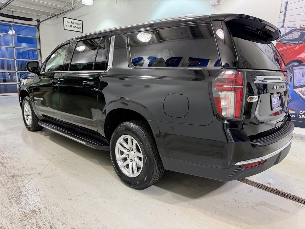 FREE LIFETIME POWERTRAIN WARRANTY, **Android Auto**, **Apple CarPlay**, **Automatic Headlights**, **Backup Camera**, **Bluetooth Hands-Free**, **CarFax One-Owner**, **Collision Avoidance System**, **Heated Seats**, **Navigation System**, **New Tires**, **Power Liftgate**, **Touchscreen Controls**, **Wi-Fi Hotspot**, 3rd Row Seats, 4WD, Bose High End Sound Package, Cold Weather Package, Heat Package, Heated Mirrors, Leather Seats, Running Boards, Suburban LT, 4WD, Black, Black Leather, 10-Way Power Driver & Passenger Seat Adjusters, 1st & 2nd Row Color-Keyed Carpeted Floor Mats, 3.23 Rear Axle Ratio, 3rd row seats: split-bench, 4-Wheel Disc Brakes, 9 Speakers, ABS brakes, Air Conditioning, Alloy wheels, AM/FM radio: SiriusXM with 360L, Apple CarPlay/Android Auto, Auto High-beam Headlights, Auto-Dimming Inside Rear-View Mirror, Auto-dimming Rear-View mirror, Automatic temperature control, Bose 9-Speaker Stereo Audio System Feature, Brake assist, Bright Front & Rear Door Sill Plates, Bumpers: body-color, Color-Keyed Carpeting Floor Covering, Compass, Delay-off headlights, Deleted 3 Years of Remote Access, Driver & Front Outboard Passenger Airbags, Driver door bin, Driver vanity mirror, Dual front impact airbags, Dual front side impact airbags, Electronic Stability Control, Emergency communication system: OnStar and Chevrolet connected services capable, Enhanced Driver Information Center, Floor Console w/Storage Area, Four wheel independent suspension, Front anti-roll bar, Front Bucket Seats, Front Center Armrest, Front dual zone A/C, Front reading lights, Fully automatic headlights, Garage door transmitter, Hands-Free Rear Power Programmable Liftgate, Heated door mirrors, Heated Driver & Front Passenger Seats, Heated front seats, Illuminated entry, Infotainment Display, Leather-Appointed Seating, LED Daytime Running Lamps, License Plate Front Mounting Package, Low tire pressure warning, Memory seat, Memory Settings For Driver, Navigation System, Occupant sensing airbag, Outside temperature display, Overhead airbag, Overhead console, Panic alarm, Passenger door bin, Passenger vanity mirror, Power door mirrors, Power driver seat, Power Liftgate, Power passenger seat, Power steering, Power windows, Preferred Equipment Group 1LT, Premium audio system: Chevrolet Infotainment 3 Premium, Premium Smooth Ride Suspension, Radio: Chevrolet Infotainment 3 Premium System, Rain sensing wipers, Rear air conditioning, Rear anti-roll bar, Rear reading lights, Rear seat center armrest, Rear window defroster, Rear window wiper, Remote keyless entry, Remote Start, Roof rack: xxxxxx, Security system, SiriusXM w/360L, Speed control, Speed-sensing steering, Split folding rear seat, Spoiler, Steering wheel mounted audio controls, Tachometer, Telescoping steering wheel, Tilt steering wheel, Traction control, Trip computer, Universal Home Remote, Variably intermittent wipers, Voltmeter, Wheels: 18 x 8.5 Bright Silver Painted Aluminum, Wireless Charging, Wrapped Steering Wheel, Suburban LT, 4WD, Black, Black Leather.