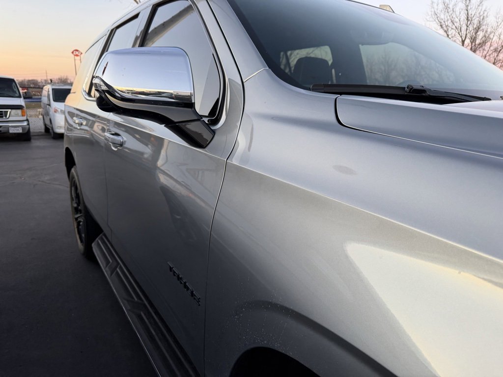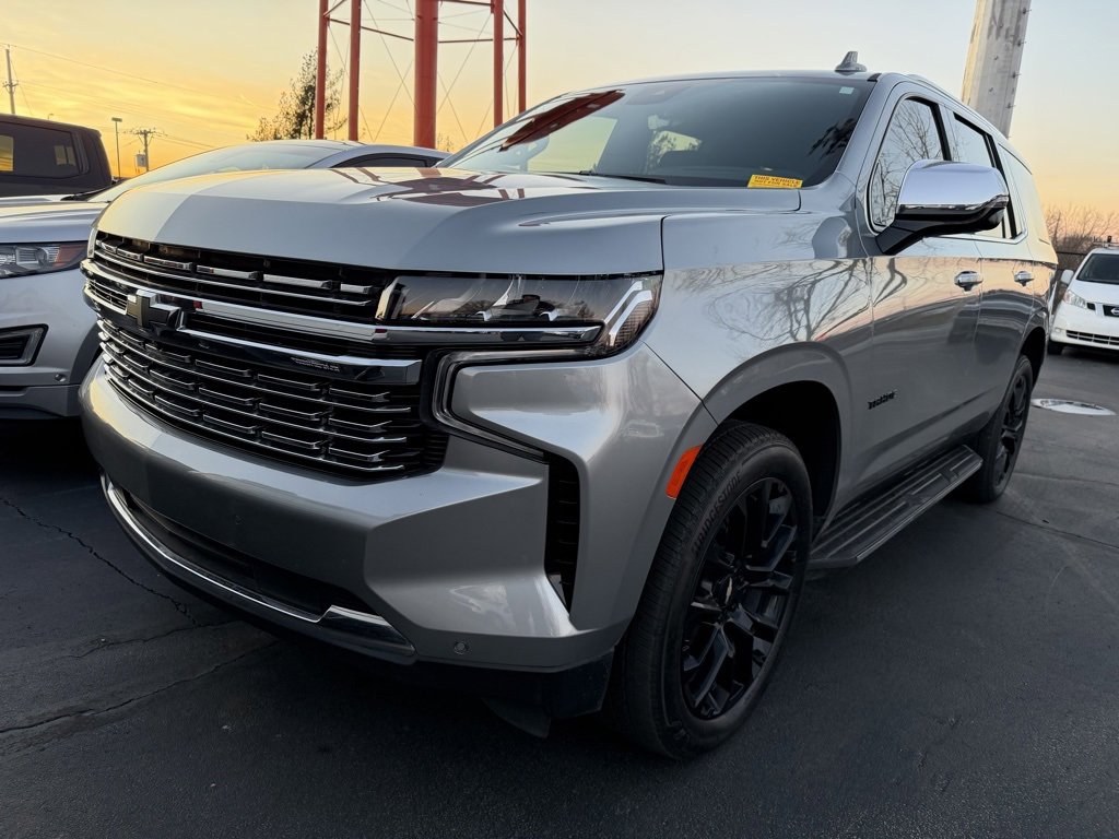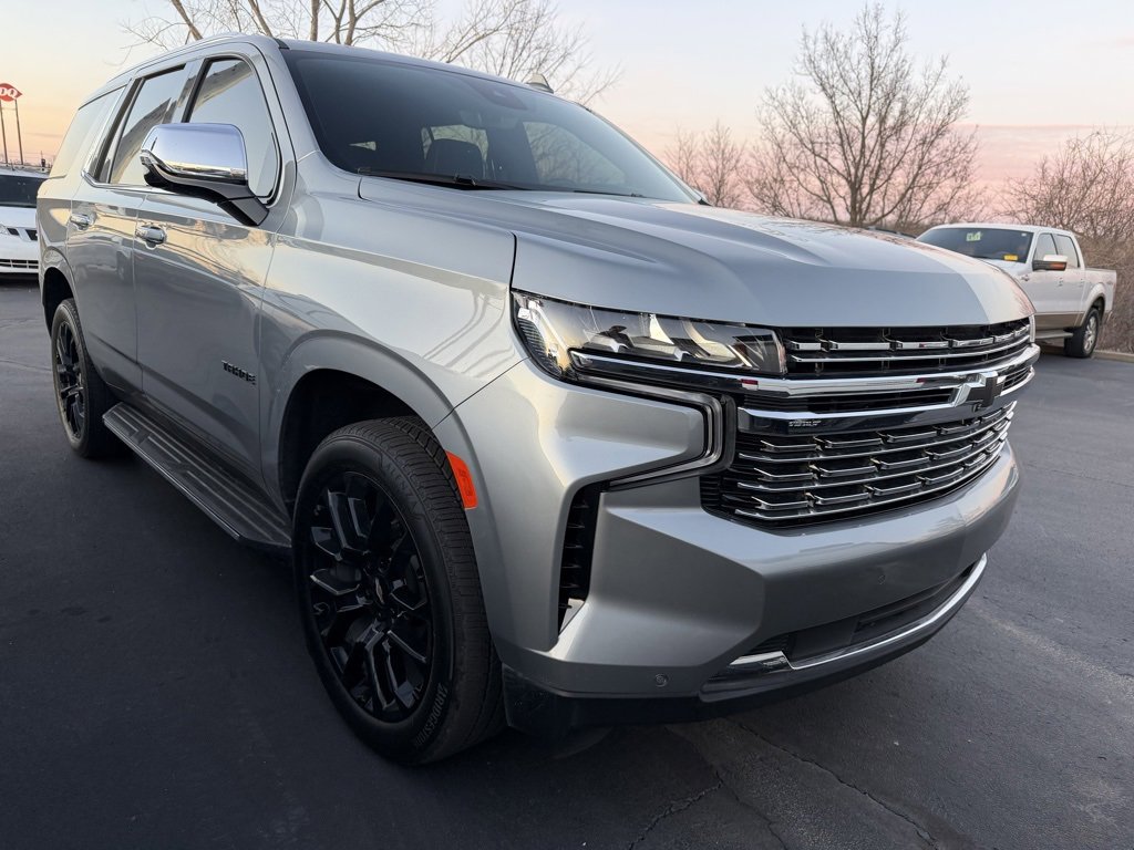 FREE LIFETIME POWERTRAIN WARRANTY, **360 Degree Camera**, **Adaptive Cruise Control**, **Android Auto**, **Apple CarPlay**, **Automatic Headlights**, **Automatic Parking**, **Backup Camera**, **Blind-Spot Monitors**, **Bluetooth Hands-Free**, **CarFax One-Owner**, **Cooled Seats**, **Heads-Up Display**, **Heated Seats**, **Lane Departure Warning**, **Lane Keep Assist**, **Navigation System**, **Parking Sensors**, **Power Liftgate**, **Rear Heated Seats**, **Rear Cross Traffic Alert**, **Touchscreen Controls**, **Voice Recognition**, **Wi-Fi Hotspot**, **Wireless Charging Pad**, 4WD, Bose High End Sound Package, Heated Steering Wheel, Local Trade, Moonroof, Rear Climate Package, Remote Start, Tow Package, USB Charging, Tahoe Premier, Sterling Gray Metallic, Jet Black Leather, 10 Speakers, 12-Way Power Driver & Passenger Seat Adjusters, 15 Diagonal Multi-Color Head-Up Display, 1st & 2nd Row Color-Keyed Carpeted Floor Mats, 1st & 2nd Rows All-Weather Floor Liners (LPO), 2-Speed Active Electronic AutoTrac Transfer Case, 20 x 9 Polished Aluminum Wheels, 3.23 Rear Axle Ratio, 3rd Row 60/40 Power-Folding Split-Bench Seat, 3rd row seats: split-bench, 4-Wheel Disc Brakes, ABS brakes, Adaptive suspension, Air Conditioning, Alloy wheels, AM/FM radio: SiriusXM with 360L, Apple CarPlay/Android Auto, Auto High-beam Headlights, Auto-dimming door mirrors, Auto-Dimming Inside Rear-View Mirror, Auto-dimming Rear-View mirror, Auto-leveling suspension, Automatic temperature control, Black Name Plates (LPO), Bose 10-Speaker Centerpoint Surround Audio Sys Ft, Brake assist, Bright Front & Rear Door Sill Plates, Bumpers: body-color, Chrome Door Handles w/Body-Color Strip, Chrome Mirror Caps, Color-Keyed Carpeting Floor Covering, Compass, Delay-off headlights, Driver & Front Outboard Passenger Airbags, Driver & Front Passenger Heated & Ventilated Seats, Driver door bin, Driver vanity mirror, Dual Exhaust System, Dual front impact airbags, Dual front side impact airbags, Dual-Pane Power Panoramic Sunroof, Electronic Stability Control, Emergency communication system: OnStar and Chevrolet connected services capable, Enhanced Display & Alert Package, Enhanced Driver Information Center, Floor Console, Four wheel independent suspension, Front & Rear Black Bowtie Emblems (LPO), Front anti-roll bar, Front Bucket Seats, Front Center Armrest, Front dual zone A/C, Front High-Back Reclining Bucket Seats, Front reading lights, Fully automatic headlights, Garage door transmitter, Hands-Free Rear Power Programmable Liftgate, HD Surround Vision, Heated 2nd Row Outboard Seats, Heated door mirrors, Heated Driver & Front Passenger Seats, Heated front seats, Heated rear seats, Heated Steering Wheel, Heated steering wheel, Hill Descent Control, Illuminated entry, Infotainment Display, Inside Rearview Auto-Dimming Rear Camera Mirror, Lane Change Alert w/Side Blind Zone Alert, LED Daytime Running Lamps, License Plate Front Mounting Package, Low tire pressure warning, Magnetic Ride Control Suspension, Memory seat, Memory Settings, Navigation System, Occupant sensing airbag, Outside Heated Power-Adjustable Mirrors, Outside temperature display, Overhead airbag, Overhead console, Panic alarm, Passenger door bin, Passenger vanity mirror, Perforated Leather Seat Trim, Power door mirrors, Power driver seat, Power Liftgate, Power passenger seat, Power Release 2nd Row Bucket Seats, Power steering, Power Tilt & Telescopic Steering Column, Power windows, Preferred Equipment Group 1LZ, Premium audio system: Chevrolet Infotainment 3 Premium, Radio: Chevrolet Infotainment 3 Premium System, Rain sensing wipers, Rear air conditioning, Rear anti-roll bar, Rear Camera Mirror Washer, Rear Cross Traffic Alert, Rear Pedestrian Alert, Rear reading lights, Rear window defroster, Rear window wiper, Remote
