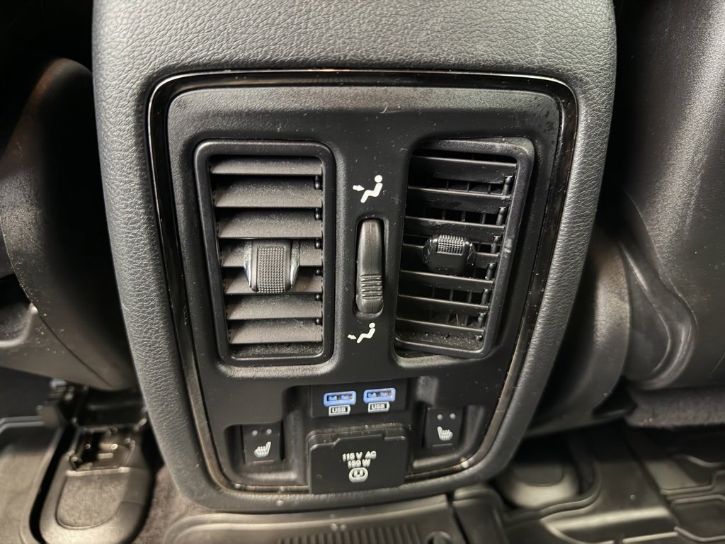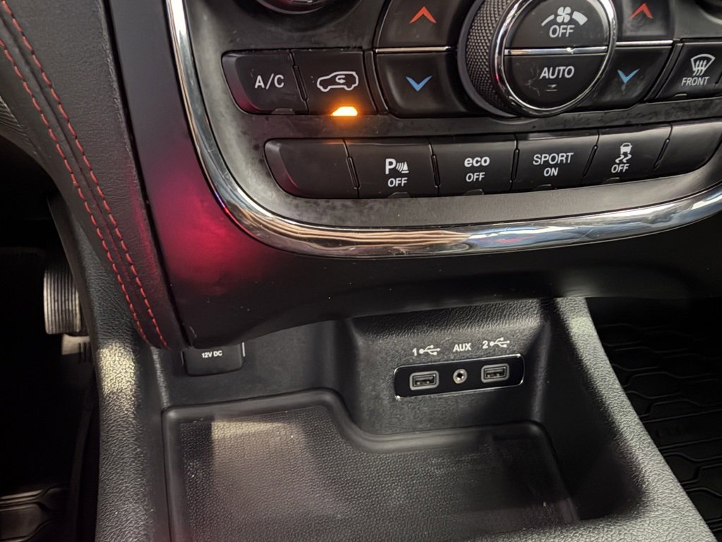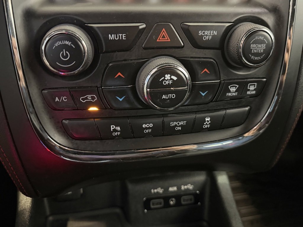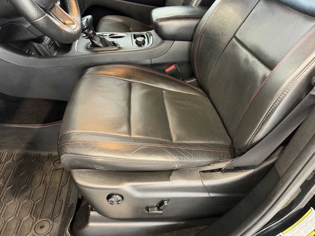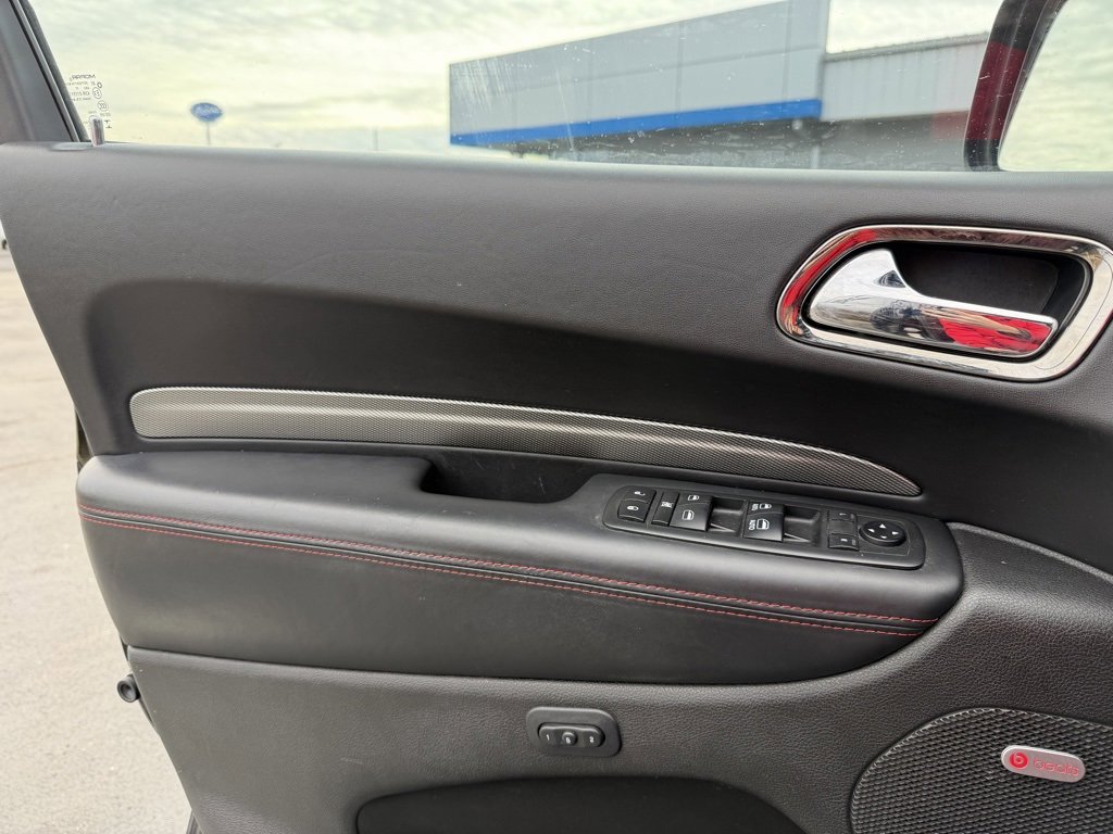 **Backup Camera**, **Cooled Seats**, **Heated Seats**, **Navigation System**, **Power Liftgate**, **Rear Heated Seats**, Audio Package, Durango R/T, HEMI 5.7L V8 Multi Displacement VVT, AWD, DB Black Crystal Clearcoat, Black Leather, 10 Speakers, 2nd Row Mini Console w/Cupholders, 2nd Row Seat Mounted Inboard Armrests, 3.09 Rear Axle Ratio, 3rd Row Floor Mat & Mini Console, 3rd row seats: split-bench, 4-Wheel Disc Brakes, 6-Passenger Seating, ABS brakes, Air Conditioning, Alloy wheels, AM/FM radio: SiriusXM, Anti-whiplash front head restraints, Apple CarPlay, Apple CarPlay/Android Auto, Audio memory, Auto High-beam Headlights, Auto-dimming door mirrors, Auto-dimming Rear-View mirror, Auto-leveling suspension, Automatic temperature control, Blacktop Package, Brake assist, Bumpers: body-color, Compass, Delay-off headlights, Driver door bin, Driver vanity mirror, Dual front impact airbags, Dual front side impact airbags, Electronic Stability Control, Emergency communication system: Roadside Assistance/9-1-1 Call, Four wheel independent suspension, Front anti-roll bar, Front Bucket Seats, Front Center Armrest w/Storage, Front dual zone A/C, Front fog lights, Front License Plate Bracket, Front reading lights, Fully automatic headlights, Garage door transmitter, Gloss Black Badges, Gloss Black Exterior Mirrors, Google Android Auto, Heated door mirrors, Heated front seats, Heated rear seats, Heated steering wheel, Heavy-Duty Engine Cooling, High-Intensity Discharge Headlights, Illuminated entry, Knee airbag, Low tire pressure warning, Lux Leather Trimmed Bucket Seats, Memory seat, Navigation system: Garmin, Occupant sensing airbag, Outside temperature display, Overhead airbag, Overhead console, Panic alarm, ParkView Rear Back-Up Camera, Passenger door bin, Passenger vanity mirror, Power 8-Way Driver Memory 8-Way Passenger Seats, Power door mirrors, Power driver seat, Power Liftgate, Power passenger seat, Power steering, Power windows, Premium Wrapped I/P Bezel, Quick Order Package 25S (DISC), Radio data system, Radio: Uconnect 4C Nav w/8.4 Display, Rain sensing wipers, Rear air conditioning, Rear anti-roll bar, Rear reading lights, Rear seat center armrest, Rear window defroster, Rear window wiper, Remote keyless entry, Security system, Speed control, Speed-Sensitive Wipers, Split folding rear seat, Spoiler, Steering wheel mounted audio controls, Tachometer, Telescoping steering wheel, Tilt steering wheel, Traction control, Trip computer, Turn signal indicator mirrors, Variably intermittent wipers, Ventilated front seats, Wheels: 20 x 8.0 Gloss Black Aluminum, Wheels: 20 x 8.0 Low Gloss Granite Crystal, Durango R/T, HEMI 5.7L V8 Multi Displacement VVT, AWD, DB Black Crystal Clearcoat, Black Leather.