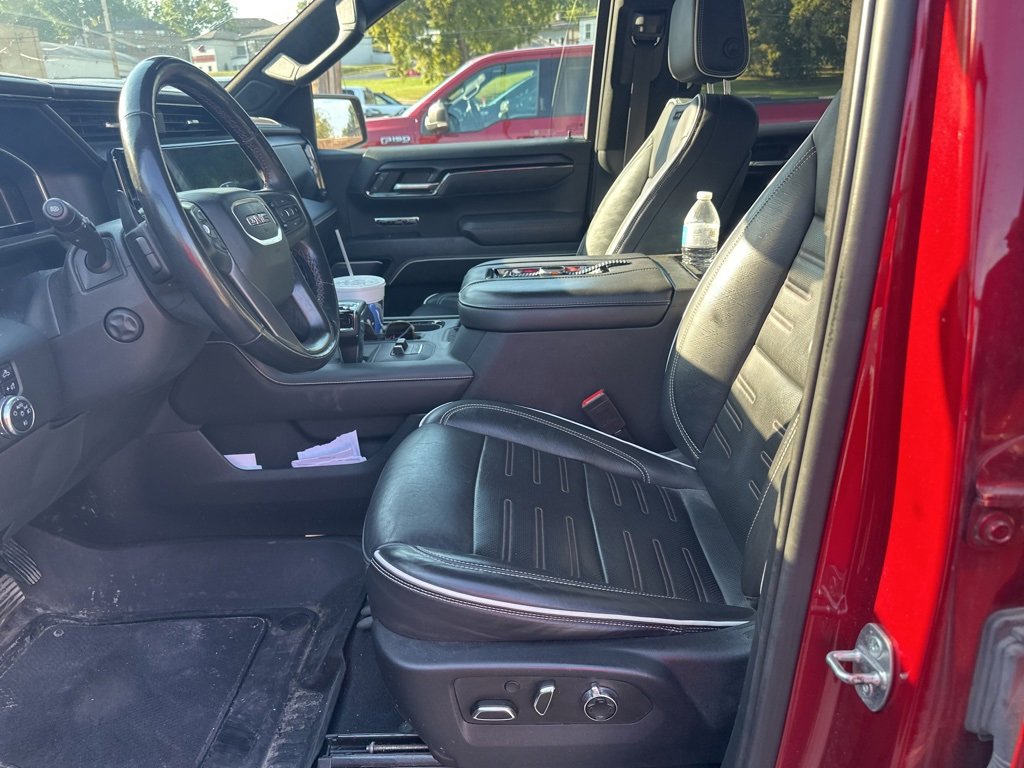**Android Auto**, **Apple CarPlay**, **Automatic Headlights**, **Backup Camera**, **Blind-Spot Monitors**, **Bluetooth Hands-Free**, **CarFax One-Owner**, **Cooled Seats**, **Heads-Up Display**, **Heated Seats**, **Keyless Access**, **Lane Departure Warning**, **Lane Keep Assist**, **Navigation System**, **Power Liftgate**, **Rear Heated Seats**, **Touchscreen Controls**, **Wi-Fi Hotspot**, **Wireless Charging Pad**, 4WD, Alloy Wheels, Bose High End Sound Package, Comfort Package, Convenience Package, Heated Mirrors, Heated Steering Wheel, Leather Seats, Local Trade, Premium Audio Package, Rear Power Sliding Window, Remote Start, Running Boards, Safety Package, Sunroof, Technology Package, Tow Package, USB Charging, 12 Speakers, 120-Volt Bed Mounted Power Outlet, 120-Volt Instrument Panel Power Outlet, 16-Way Power Driver Seat Adjuster w/Lumbar, 16-Way Power Passenger Seat Adjuster w/Lumbar, 2 Charge/Data USB Ports Inside Center Console, 2 Type-C Charge-Only Rear USB Ports, 2 USB Ports, 3.23 Rear Axle Ratio, 4-Wheel Disc Brakes, ABS brakes, Air Conditioning, Alloy wheels, AM/FM radio: SiriusXM with 360L, Apple CarPlay/Android Auto, Auto High-beam Headlights, Auto-dimming door mirrors, Auto-dimming Rear-View mirror, Automatic Emergency Braking, Automatic temperature control, Bed View Camera, Bose Premium Series w/12-Speaker System, Brake assist, Buckle to Drive, Bumpers: body-color, Color-Keyed Carpeting Floor Covering, Compass, Dark Nickel Header & Grille Insert Bars, Deep-Tinted Glass, Delay-off headlights, Driver door bin, Driver Memory, Driver vanity mirror, Driver-Selectable Full-Locking Front Differential, Driver-Selectable Full-Locking Rear Differential, Dual front impact airbags, Dual front side impact airbags, Electric Rear-Window Defogger, Electrical Steering Column Lock, Electronic Stability Control, Emergency communication system: OnStar and GMC Connected Services capable, Floor-Mounted Center Console, Following Distance Indicator, Forward Collision Alert, Front anti-roll bar, Front Bucket Seats, Front Center Armrest, Front dual zone A/C, Front fog lights, Front Pedestrian Braking, Front Prem Floor Liners w/Removable Carpet Insert, Front Rainsensing Wipers, Front reading lights, Front wheel independent suspension, Full Grain Leather Seat Trim, Fully automatic headlights, Garage door transmitter, Genuine wood dashboard insert, Genuine wood door panel insert, GMC Connected Access Capable, HD Surround Vision, Heads-Up Display, Heated 2nd Row Outboard Seats, Heated door mirrors, Heated Driver & Front Outboard Passenger Seating, Heated front seats, Heated rear seats, Heated steering wheel, Heavy-Duty Air Filter, Hill Descent Control, Hitch Guidance, Hitch Guidance w/Hitch View, Illuminated entry, In-Vehicle Trailering App, Integrated Trailer Brake Controller, IntelliBeam Automatic High Beam On/Off, Keyless Open & Start, Lane Keep Assist w/Lane Departure Warning, LED Cargo Area Lighting, Low tire pressure warning, Memory seat, Multicolor 15 Diagonal Head-Up Display, MultiPro Audio System by Kicker (LPO), Navigation System, Occupant sensing airbag, Off-Road Suspension, OnStar & GMC Connected Services Capable, Outside temperature display, Overhead airbag, Overhead console, Panic alarm, Passenger door bin, Passenger vanity mirror, Perimeter Lighting, Power Door Locks, Power door mirrors, Power driver seat, Power Front Passenger Windows w/Express Up/Down, Power Front Windows w/Driver Express Up/Down, Power moonroof, Power passenger seat, Power Rake & Telescoping Steering Column, Power Rear Windows w/Express Down, Power Sliding Rear Window w/Rear Defogger, Power steering, Power Sunroof, Power windows, Preferred Equipment Group 4SG, Premium audio system: GMC Infotainment System, Push Button Start, Radio data system, Radio: Premium GMC Infotainment Audio System, Rain sen