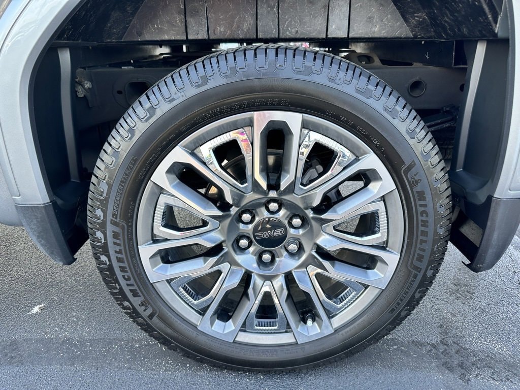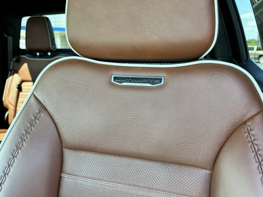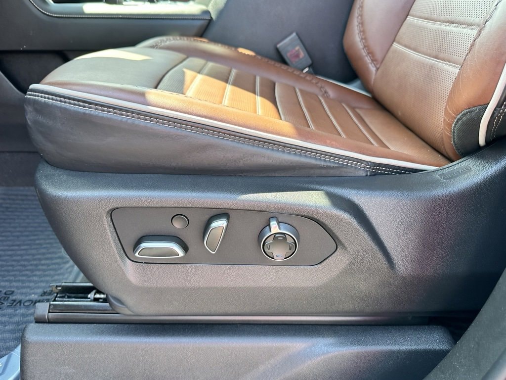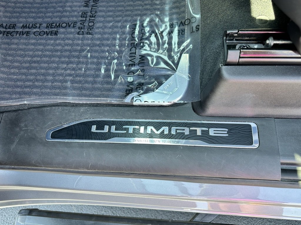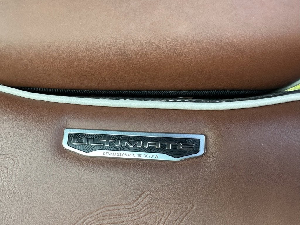 FREE LIFETIME POWERTRAIN WARRANTY, **360 Degree Camera**, **Air Ride Suspension**, **Adaptive Headlights**, **Apple CarPlay**, **Automatic Headlights**, **Backup Camera**, **Blind-Spot Monitors**, **Bluetooth Hands-Free**, **CarFax One-Owner**, **Cooled Seats**, **Collision Avoidance System**, **Heads-Up Display**, **Heated Seats**, **Keyless Access**, **Lane Departure Warning**, **Lane Keep Assist**, **Navigation System**, **New Tires**, **Parking Sensors**, **Power Liftgate**, **Touchscreen Controls**, **Wi-Fi Hotspot**, **Wireless Charging Pad**, 20 Inch Wheels, 4WD, Bose High End Sound Package, Convenience Package, Moonroof, Remote Start, Sierra 1500 Denali Ultimate, EcoTec3 6.2L V8, Sterling Metallic, Alpine Umber Leather, 12 Speakers, 120-Volt Bed Mounted Power Outlet, 120-Volt Interior Power Outlet, 16-Way Power Driver Seat Adjuster w/Lumbar, 16-Way Power Passenger Seat Adjuster w/Lumbar, 170 Amp Alternator, 2 Charge/Data USB Ports Inside Center Console, 2 Type-C Charge-Only Rear USB Ports, 2 USB Ports, 3.23 Rear Axle Ratio, 4-Wheel Disc Brakes, ABS brakes, Adaptive suspension, Air Conditioning, Alloy wheels, AM/FM radio: SiriusXM with 360L, Apple CarPlay/Android Auto, Auto High-beam Headlights, Auto-dimming door mirrors, Auto-dimming Rear-View mirror, Auto-Locking Rear Differential, Automatic temperature control, Bed View Camera, Body Color Wheel Arch Moldings (LPO), Bose Premium Series w/12-Speaker System, Brake assist, Buckle to Drive, Bumpers: body-color, Carbon Fiber Composite Bed, Chrome Recovery Hooks, Color-Keyed Carpeting Floor Covering, Compass, Deep-Tinted Glass, Delay-off headlights, Denali Premium Suspension w/Adaptive Ride Control, Driver door bin, Driver Memory, Driver vanity mirror, Dual Active Exhaust, Dual front impact airbags, Dual front side impact airbags, Electric Rear-Window Defogger, Electronic Stability Control, Emergency communication system: OnStar and GMC connected services capable, Enhanced Automatic Emergency Braking, Floor-Mounted Center Console, Following Distance Indicator, Forward Collision Alert, Front anti-roll bar, Front Bucket Seats, Front Center Armrest, Front dual zone A/C, Front fog lights, Front License Plate Kit, Front Pedestrian Braking, Front Rain-Sensing Wipers, Front reading lights, Front wheel independent suspension, Full Grain Leather Seat Trim, Fully automatic headlights, Garage door transmitter, Genuine wood console insert, Genuine wood dashboard insert, Genuine wood door panel insert, GMC Connected Access Capable, HD Surround Vision, Heads-Up Display, Heated 2nd Row Outboard Seats, Heated door mirrors, Heated Driver & Front Outboard Passenger Seating, Heated front seats, Heated rear seats, Heated steering wheel, Heavy-Duty Air Filter, Hill Descent Control, Hitch Guidance, Hitch View, Illuminated entry, In-Vehicle Trailering System App, Integrated Trailer Brake Controller, IntelliBeam Automatic High Beam On/Off, Keyless Open & Start, Lane Keep Assist w/Lane Departure Warning, LED Cargo Area Lighting, Low tire pressure warning, Memory seat, Multicolor 15 Diagonal Head-Up Display, MultiPro Tailgate Audio System by Kicker (LPO), Navigation System, Occupant sensing airbag, OnStar & GMC Connected Services Capable, Outside temperature display, Overhead airbag, Overhead console, Panic alarm, Passenger door bin, Passenger vanity mirror, Perimeter Lighting, Power Door Locks, Power door mirrors, Power driver seat, Power Front Passenger Windows w/Express Up/Down, Power Front Windows w/Driver Express Up/Down, Power moonroof, Power passenger seat, Power Rake & Telescoping Steering Column, Power Rear Windows w/Express Down, Power Sliding Rear Window w/Rear Defogger, Power steering, Power Sunroof, Power windows, Preferred Equipment Group 5SB, Premium audio system: GMC Infotainment System, Push
