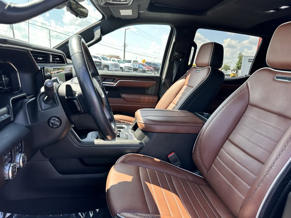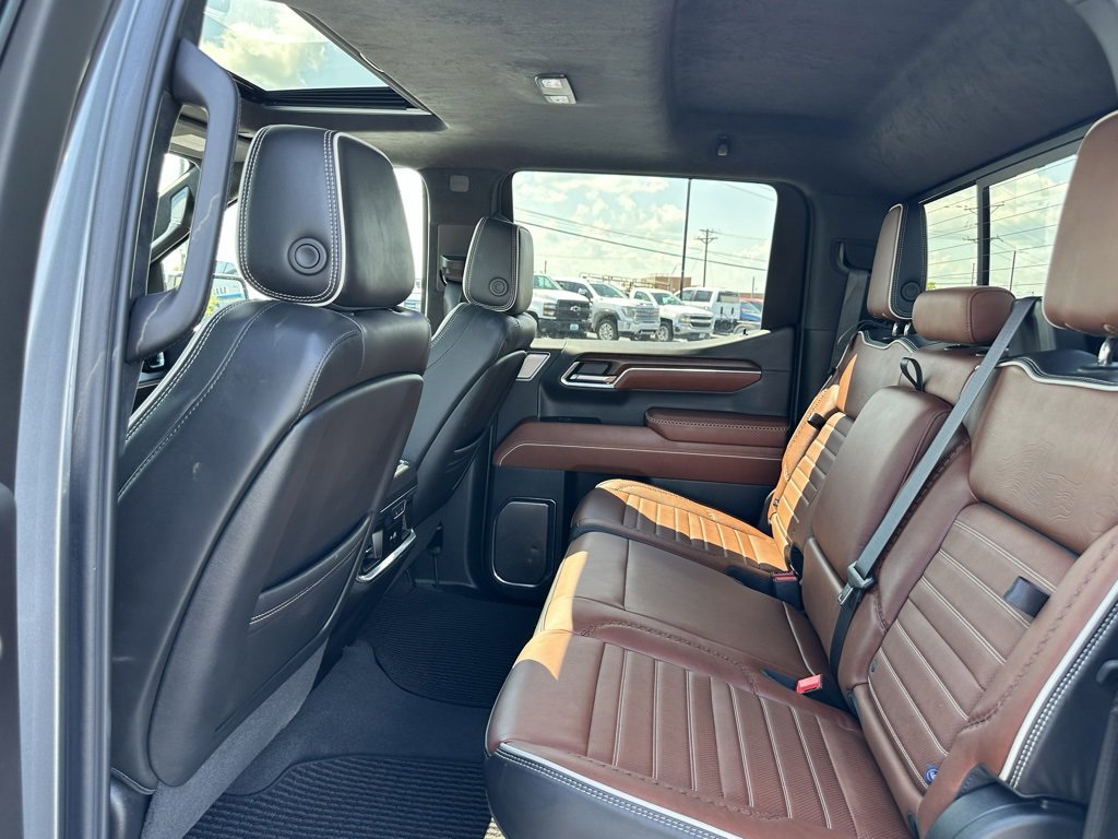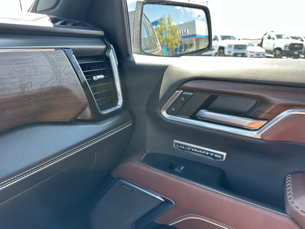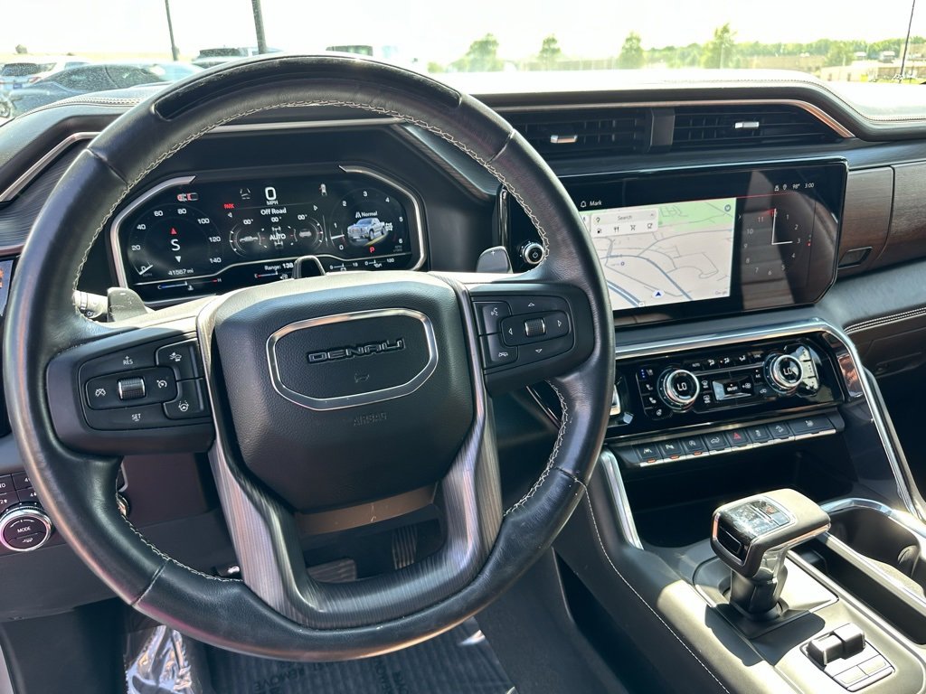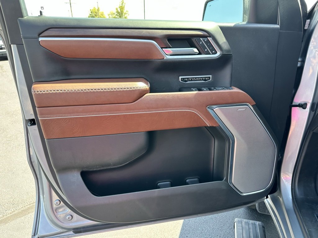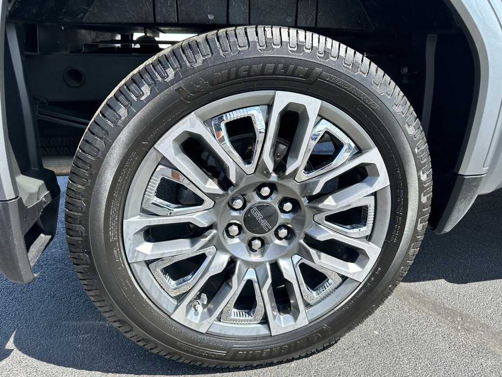 FREE LIFETIME POWERTRAIN WARRANTY, **360 Degree Camera**, **Air Ride Suspension**, **Adaptive Headlights**, **Apple CarPlay**, **Automatic Headlights**, **Backup Camera**, **Blind-Spot Monitors**, **Bluetooth Hands-Free**, **CarFax One-Owner**, **Cooled Seats**, **Collision Avoidance System**, **Heads-Up Display**, **Heated Seats**, **Keyless Access**, **Lane Departure Warning**, **Lane Keep Assist**, **Navigation System**, **New Tires**, **Parking Sensors**, **Power Liftgate**, **Touchscreen Controls**, **Wi-Fi Hotspot**, **Wireless Charging Pad**, 20 Inch Wheels, 4WD, Bose High End Sound Package, Convenience Package, Moonroof, Remote Start, Sierra 1500 Denali Ultimate, EcoTec3 6.2L V8, Sterling Metallic, Alpine Umber Leather, 12 Speakers, 120-Volt Bed Mounted Power Outlet, 120-Volt Interior Power Outlet, 16-Way Power Driver Seat Adjuster w/Lumbar, 16-Way Power Passenger Seat Adjuster w/Lumbar, 170 Amp Alternator, 2 Charge/Data USB Ports Inside Center Console, 2 Type-C Charge-Only Rear USB Ports, 2 USB Ports, 3.23 Rear Axle Ratio, 4-Wheel Disc Brakes, ABS brakes, Adaptive suspension, Air Conditioning, Alloy wheels, AM/FM radio: SiriusXM with 360L, Apple CarPlay/Android Auto, Auto High-beam Headlights, Auto-dimming door mirrors, Auto-dimming Rear-View mirror, Auto-Locking Rear Differential, Automatic temperature control, Bed View Camera, Body Color Wheel Arch Moldings (LPO), Bose Premium Series w/12-Speaker System, Brake assist, Buckle to Drive, Bumpers: body-color, Carbon Fiber Composite Bed, Chrome Recovery Hooks, Color-Keyed Carpeting Floor Covering, Compass, Deep-Tinted Glass, Delay-off headlights, Denali Premium Suspension w/Adaptive Ride Control, Driver door bin, Driver Memory, Driver vanity mirror, Dual Active Exhaust, Dual front impact airbags, Dual front side impact airbags, Electric Rear-Window Defogger, Electronic Stability Control, Emergency communication system: OnStar and GMC connected services capable, Enhanced Automatic Emergency Braking, Floor-Mounted Center Console, Following Distance Indicator, Forward Collision Alert, Front anti-roll bar, Front Bucket Seats, Front Center Armrest, Front dual zone A/C, Front fog lights, Front License Plate Kit, Front Pedestrian Braking, Front Rain-Sensing Wipers, Front reading lights, Front wheel independent suspension, Full Grain Leather Seat Trim, Fully automatic headlights, Garage door transmitter, Genuine wood console insert, Genuine wood dashboard insert, Genuine wood door panel insert, GMC Connected Access Capable, HD Surround Vision, Heads-Up Display, Heated 2nd Row Outboard Seats, Heated door mirrors, Heated Driver & Front Outboard Passenger Seating, Heated front seats, Heated rear seats, Heated steering wheel, Heavy-Duty Air Filter, Hill Descent Control, Hitch Guidance, Hitch View, Illuminated entry, In-Vehicle Trailering System App, Integrated Trailer Brake Controller, IntelliBeam Automatic High Beam On/Off, Keyless Open & Start, Lane Keep Assist w/Lane Departure Warning, LED Cargo Area Lighting, Low tire pressure warning, Memory seat, Multicolor 15 Diagonal Head-Up Display, MultiPro Tailgate Audio System by Kicker (LPO), Navigation System, Occupant sensing airbag, OnStar & GMC Connected Services Capable, Outside temperature display, Overhead airbag, Overhead console, Panic alarm, Passenger door bin, Passenger vanity mirror, Perimeter Lighting, Power Door Locks, Power door mirrors, Power driver seat, Power Front Passenger Windows w/Express Up/Down, Power Front Windows w/Driver Express Up/Down, Power moonroof, Power passenger seat, Power Rake & Telescoping Steering Column, Power Rear Windows w/Express Down, Power Sliding Rear Window w/Rear Defogger, Power steering, Power Sunroof, Power windows, Preferred Equipment Group 5SB, Premium audio system: GMC Infotainment System, Push
