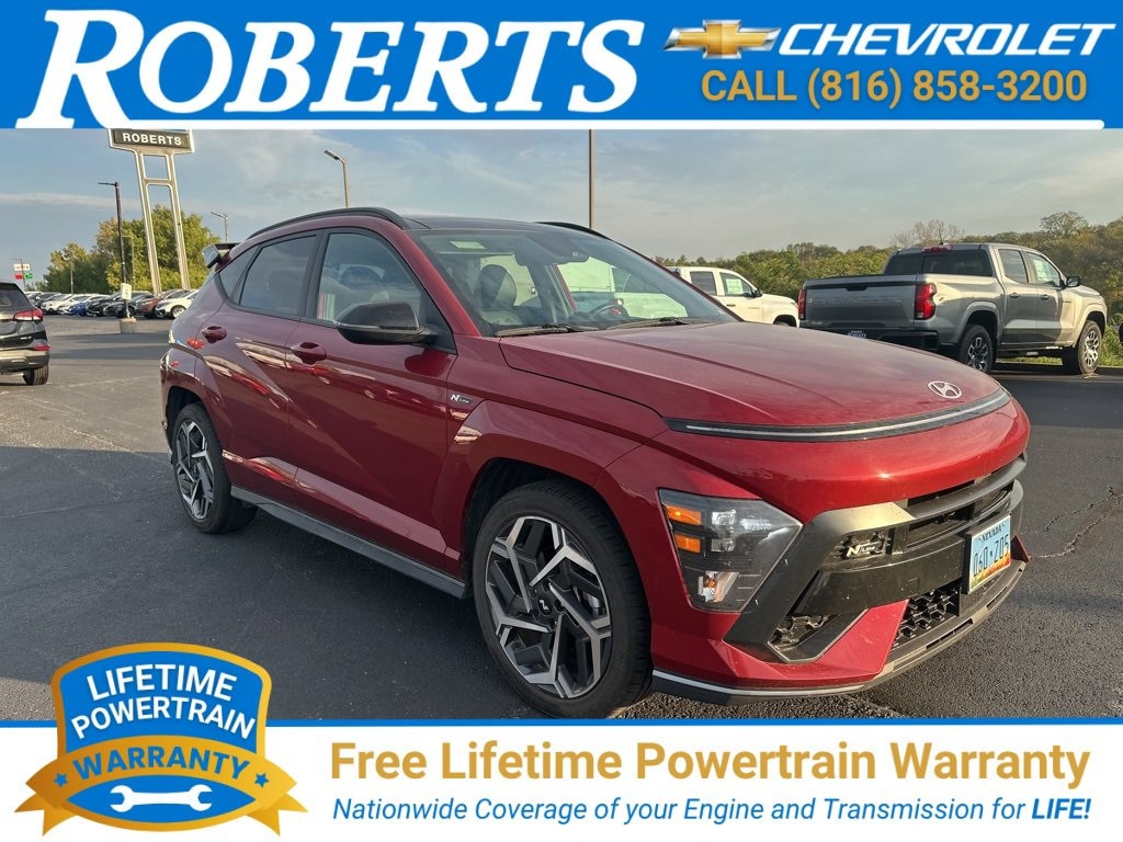 Recent Arrival! 2024 Hyundai Kona N Line 4D Sport Utility FWD I4 Ultimate Red MetallicCARFAX One-Owner. Clean CARFAX.3.510 Axle Ratio, 4-Wheel Disc Brakes, 8 Speakers, ABS brakes, Air Conditioning, Alloy wheels, AM/FM radio: SiriusXM, Apple CarPlay & Android Auto, Auto High-beam Headlights, Auto-dimming Rear-View mirror, Automatic temperature control, Brake assist, Bumpers: body-color, Column-Mounted Shift-By-Wire, Delay-off headlights, Driver door bin, Driver vanity mirror, Dual front impact airbags, Dual front side impact airbags, Electronic Stability Control, Emergency communication system: Bluelink+, Exterior Parking Camera Rear, Front anti-roll bar, Front Bucket Seats, Front Center Armrest, Front dual zone A/C, Front reading lights, Front wheel independent suspension, Fully automatic headlights, Heated door mirrors, Heated front seats, Heated Front Sport Bucket Seats, Illuminated entry, Leather Shift Knob, Leather steering wheel, Low tire pressure warning, N-Line Alcantara Sport Combination Seat Trim, Navigation System, Occupant sensing airbag, Option Group 01, Outside temperature display, Overhead airbag, Panic alarm, Passenger door bin, Passenger vanity mirror, Power door mirrors, Power driver seat, Power moonroof, Power steering, Power windows, Radio: AM/FM/HD Radio/SiriusXM Audio System, Rear seat center armrest, Rear window defroster, Rear window wiper, Remote keyless entry, Security system, Speed control, Speed-sensing steering, Split folding rear seat, Spoiler, Steering wheel mounted audio controls, Tachometer, Telescoping steering wheel, Tilt steering wheel, Traction control, Trip computer, Turn signal indicator mirrors, Variably intermittent wipers, Wheels: 19 x 7.5J Metallic Alloy.At Roberts Chevrolet in Platte City, MO we take pride in being a family-owned and operated dealership serving Platte City and the greater Kansas City area since 1999. Our roots trace back to 1951 in Bonner Springs, Kansas, reflecting a longstanding commitment to our community. We believe a handshake is more than a gesture it's a symbol of trust, integrity, and our unwavering commitment to our customers. Our Handshake Promise ensures a transparent, no-pressure car-buying experience, where every customer is treated like family. As your local Chevrolet dealer, we understand the importance of trust and transparency. Our customers appreciate our straightforward approach to car buying. We believe in honest deals without hidden fees, ensuring that the price you see is the price you pay. Our dealership is more than just a place to buy a car; it's a part of the community. With a wide selection of new and pre-owned Chevrolet vehicles, we cater to the diverse needs of drivers in Platte City and surrounding areas, including Weston, St. Joseph, Liberty, Kansas City, North Kansas City, Parkville, Leavenworth, KS, and Lansing, KS. Our commitment to excellence extends beyond sales, offering top-notch service and maintenance to keep your vehicle running smoothly.Thank you for taking the time to look at this superb 2024 Hyundai Kona. Join the many satisfied customers who have found their perfect vehicle at Roberts Chevrolet. Visit us today and see why we're known for being the gold standard. Just good people doing good business with great deals who still believe in the golden rule! Important Pricing & Availability Information Roberts Chevrolet Out-of-state delivery is available; a delivery charge may apply. To confirm vehicle availability, schedule a test drive, or inquire about new arrivals, call us at (816) 858-3200. Due to high demand, appointments are strongly recommended. Disclaimer: Images and graphics are for illustrative purposes only and may be updated at the dealerships discretion. Pricing Details: Advertised prices on both new and pre-owned vehicles do not include sales tax, registration, title, finance charges, or documentation fees. These costs are the responsibility of the purchaser. Pricing also refl