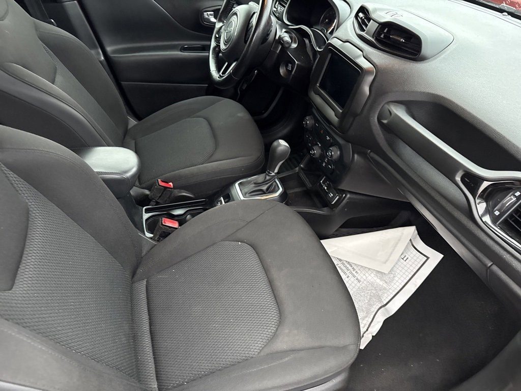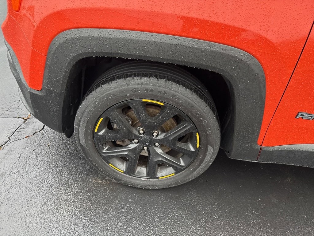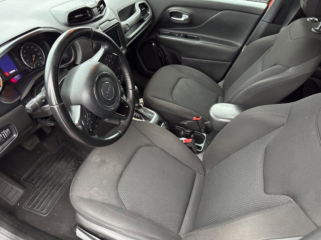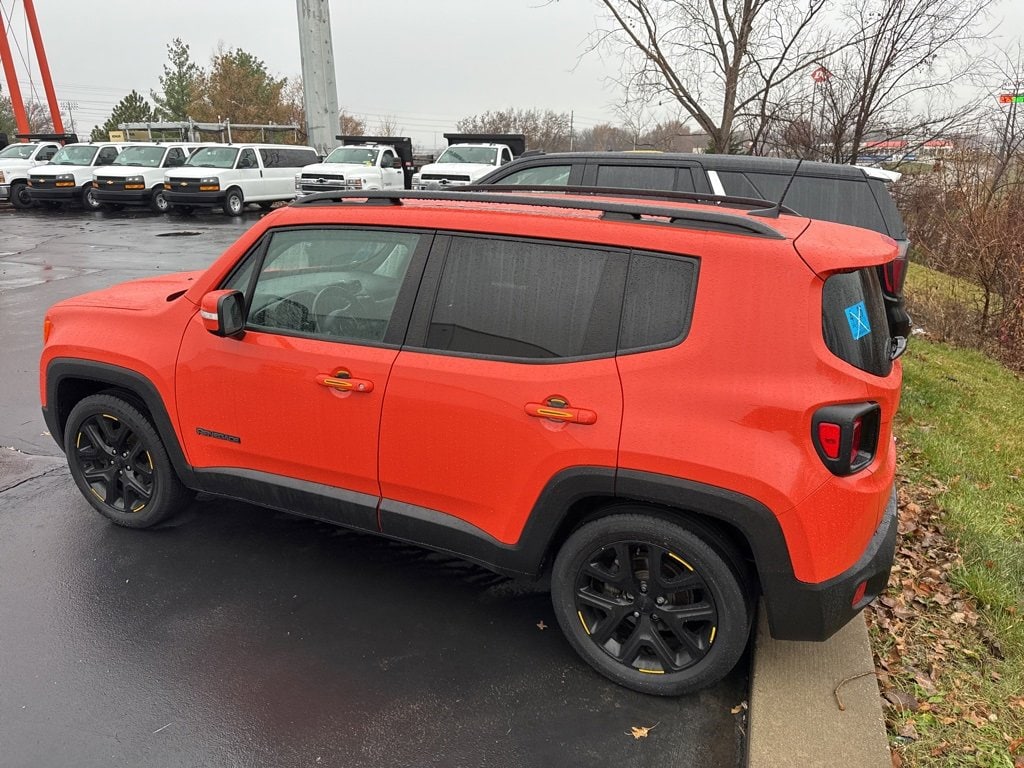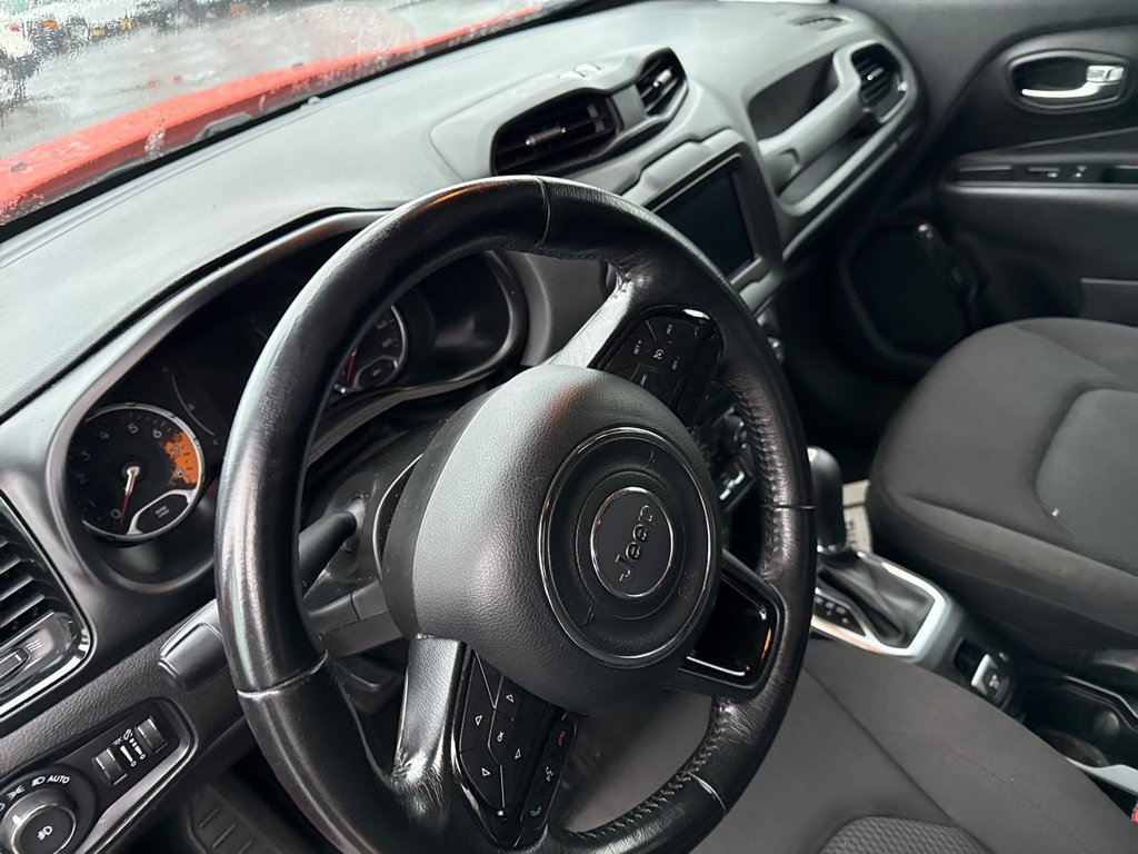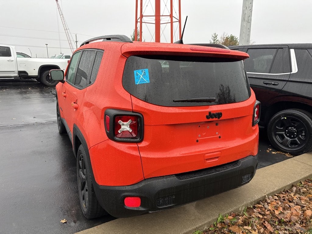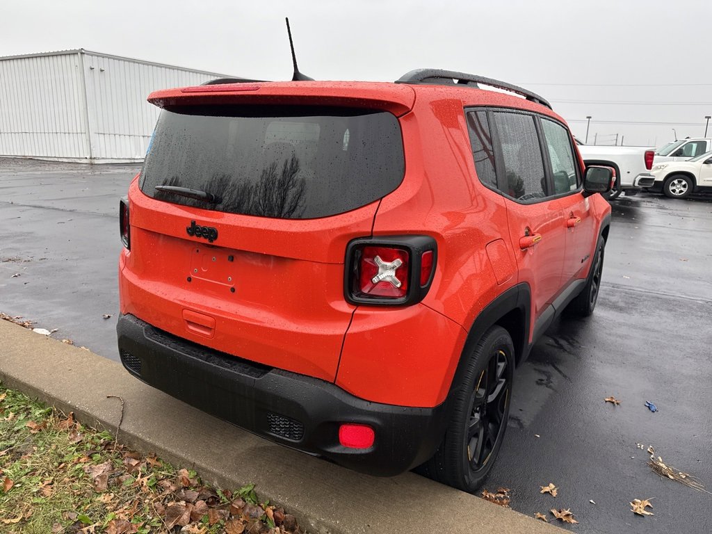 **Android Auto**, **Apple CarPlay**, **Automatic Headlights**, **Backup Camera**, **Bluetooth Hands-Free**, **Keyless Access**, **Touchscreen Controls**, Appearance Package, Heated Mirrors, Renegade Altitude, FWD, Omaha Orange, Black Cloth, 16 x 6.5 Aluminum Wheels, 4-Wheel Disc Brakes, 6 Speakers, ABS brakes, Air Conditioning, Alloy wheels, Altitude Package, AM/FM radio: SiriusXM, Anti-whiplash front head restraints, Apple CarPlay/Android Auto, Automatic temperature control, Black Accent Stitching, Black Day Light Opening Moldings, Brake assist, Compass, Delay-off headlights, Deluxe Cloth High-Back Bucket Seats, Driver door bin, Driver vanity mirror, Dual front impact airbags, Dual front side impact airbags, Electronic Stability Control, Exterior Mirrors w/Supplemental Signals, Four wheel independent suspension, Front anti-roll bar, Front Bucket Seats, Front Center Armrest, Front dual zone A/C, Front fog lights, Front reading lights, Fully automatic headlights, Gloss Black Badging, Gloss Black Instrument Panel Bezels, Gloss Black Rear Fascia Applique, Heated door mirrors, Illuminated entry, Knee airbag, Leather steering wheel, Low tire pressure warning, Normal Duty Suspension, Occupant sensing airbag, Outside temperature display, Overhead airbag, Overhead console, Panic alarm, ParkView Rear Back-Up Camera, Passenger door bin, Passenger vanity mirror, Power door mirrors, Power steering, Power windows, Premium Cloth Bucket Seats, Quick Order Package 27L Altitude, Radio data system, Radio: Uconnect 4 w/7 Display, Rear anti-roll bar, Rear window defroster, Rear window wiper, Remote keyless entry, Roof rack: rails only, Speed control, Split folding rear seat, Spoiler, Steering wheel mounted audio controls, Tachometer, Telescoping steering wheel, Tilt steering wheel, Traction control, Trip computer, Variably intermittent wipers, Vinyl Door Trim Panel, Voltmeter, Wheels: 18 x 8.0 Gloss Black, Renegade Altitude, FWD, Omaha Orange, Black Cloth.